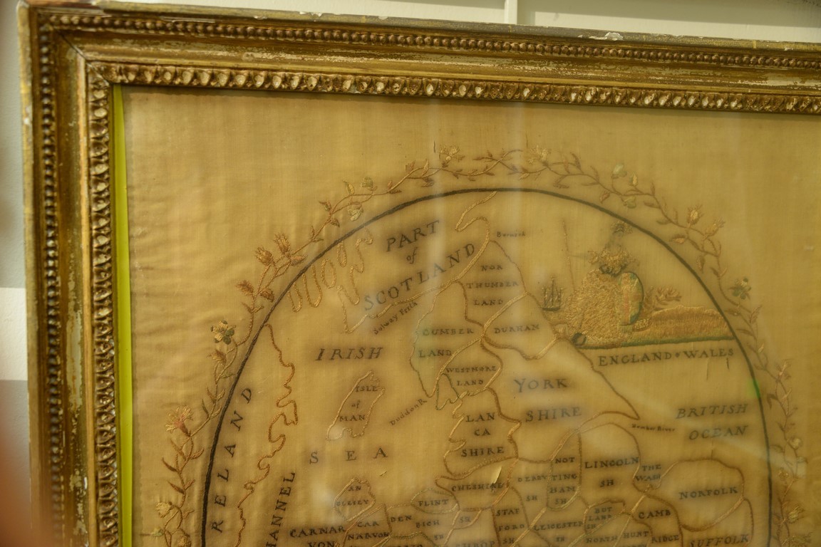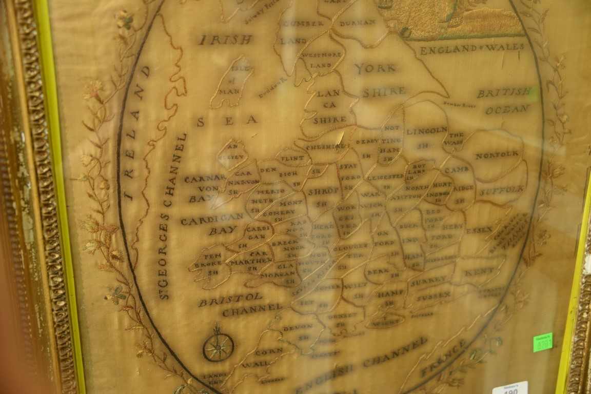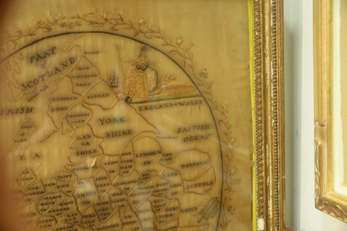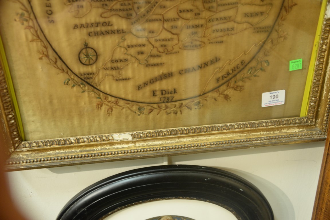 Lot 190: Embroidery map of England and Wales, marked E. Dick 1797. sight size 20 x 18