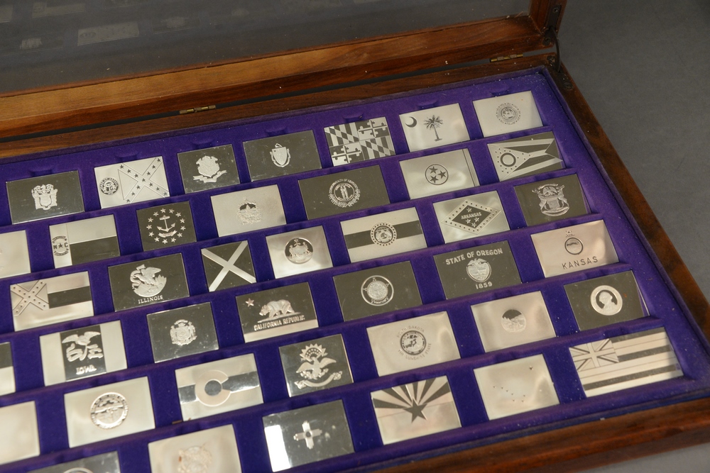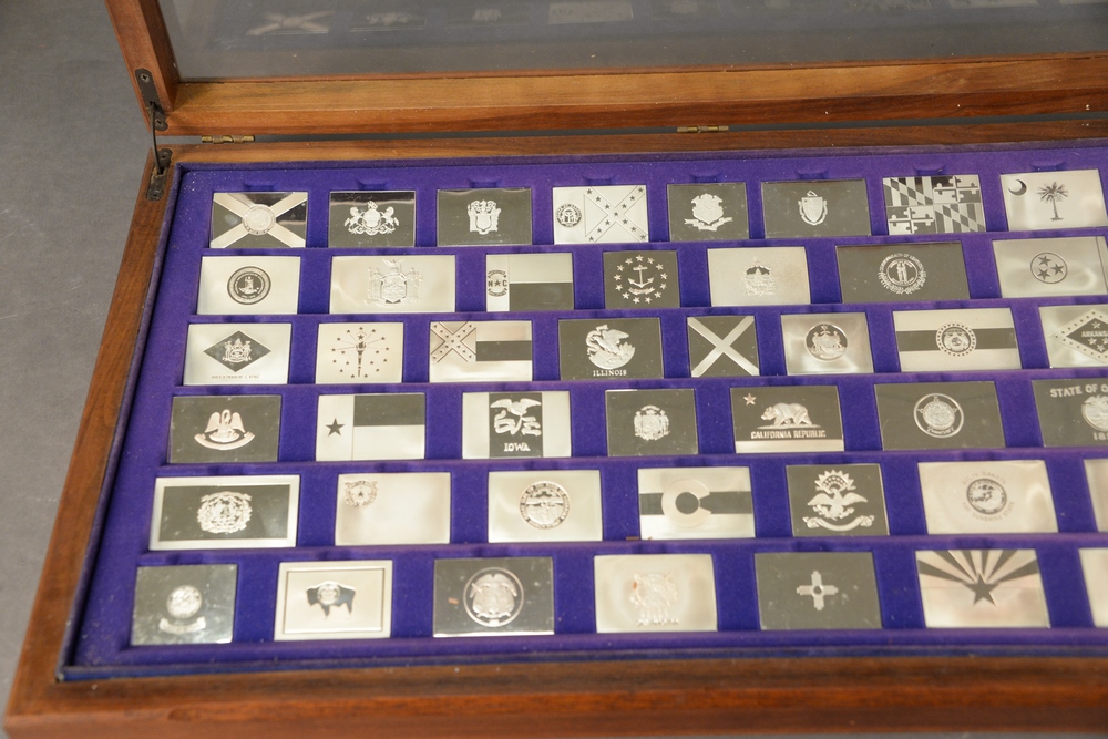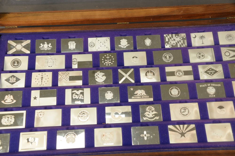 Franklin Mint Collection of Sterling State Flag Plaques, in fitted case, 106.28 t.oz.