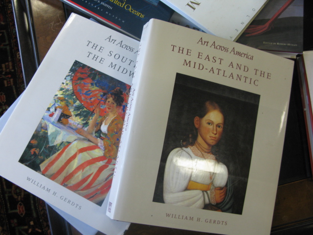 Group of coffee tables books including Art Across America, North American Burl Treen, George Catlin, Travels In the Interior of North America and Harbor and Home, etc.