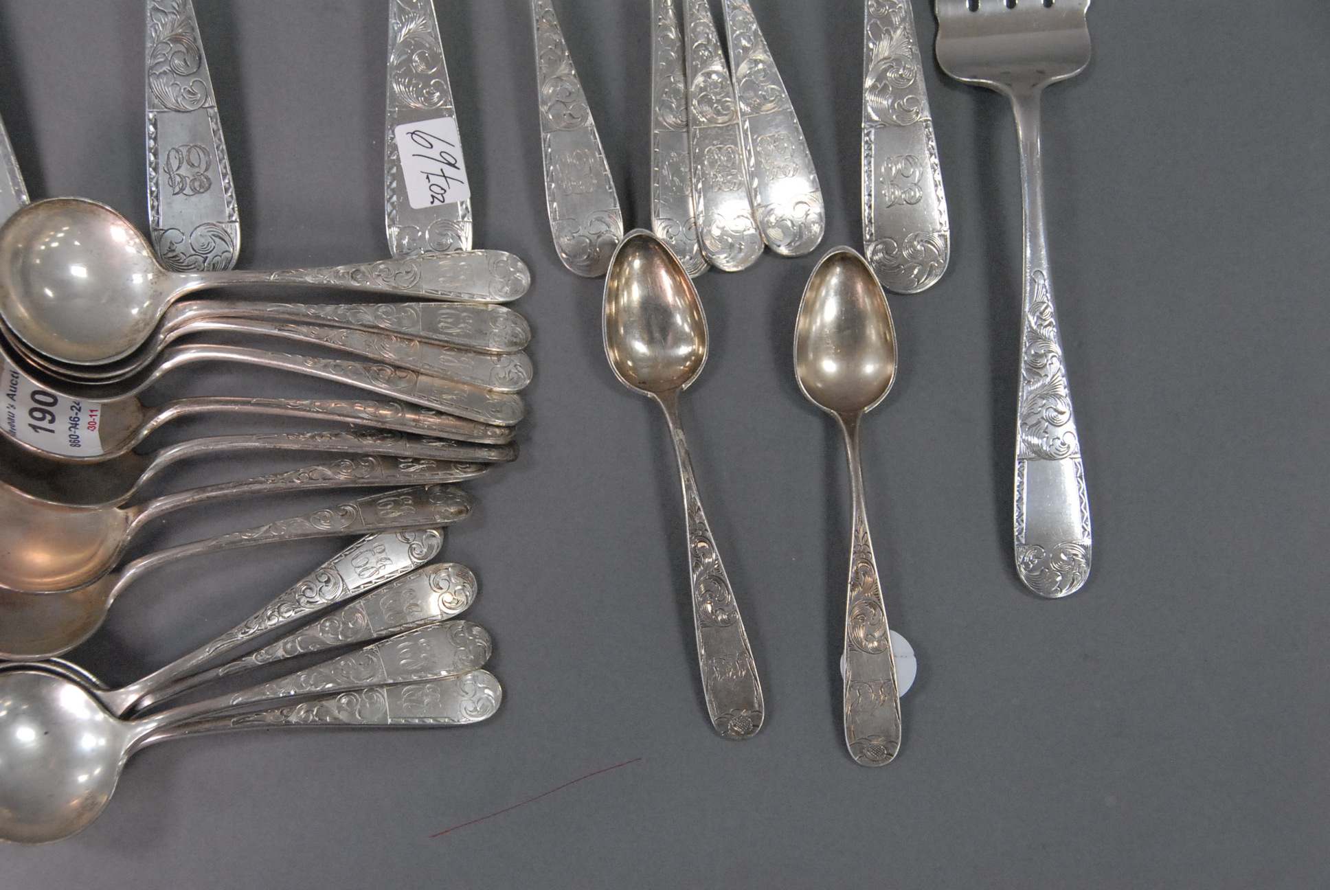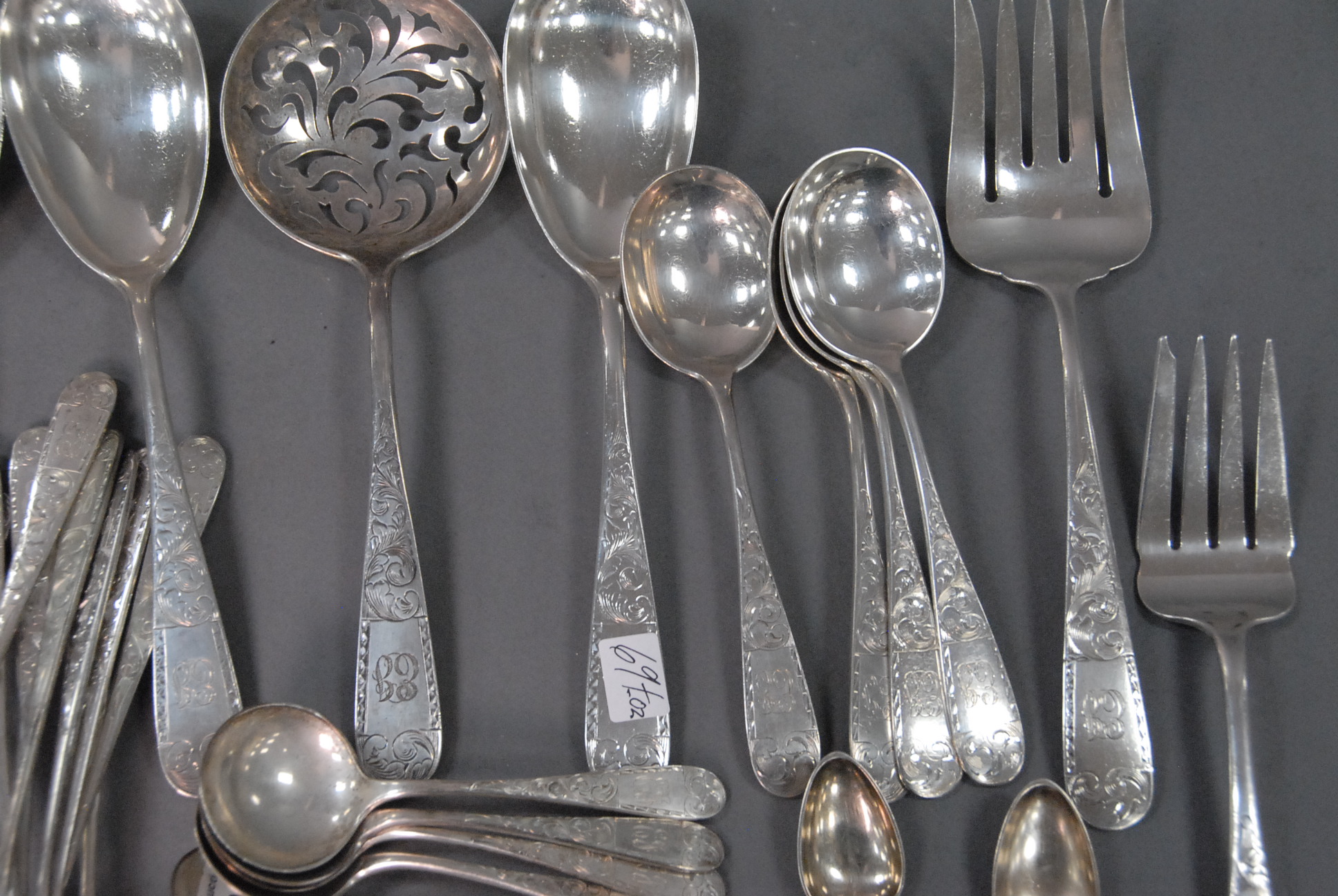 Kirk & Sons sterling silver flatware, partial set with seven serving pieces, 69 troy oz.