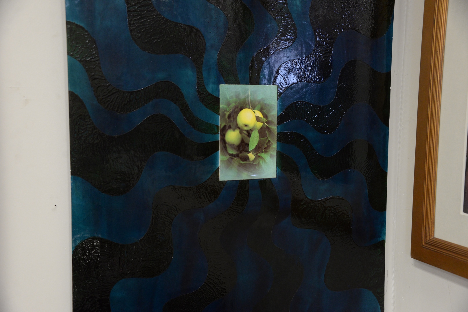 Patty Martori (American, b. 1956), Apples, 1987, mixed media on paper laid on panel, unsigned, 35 1/4″ x 28 1/4″, with a Pat Hearn Gallery label adhered to the reverse.