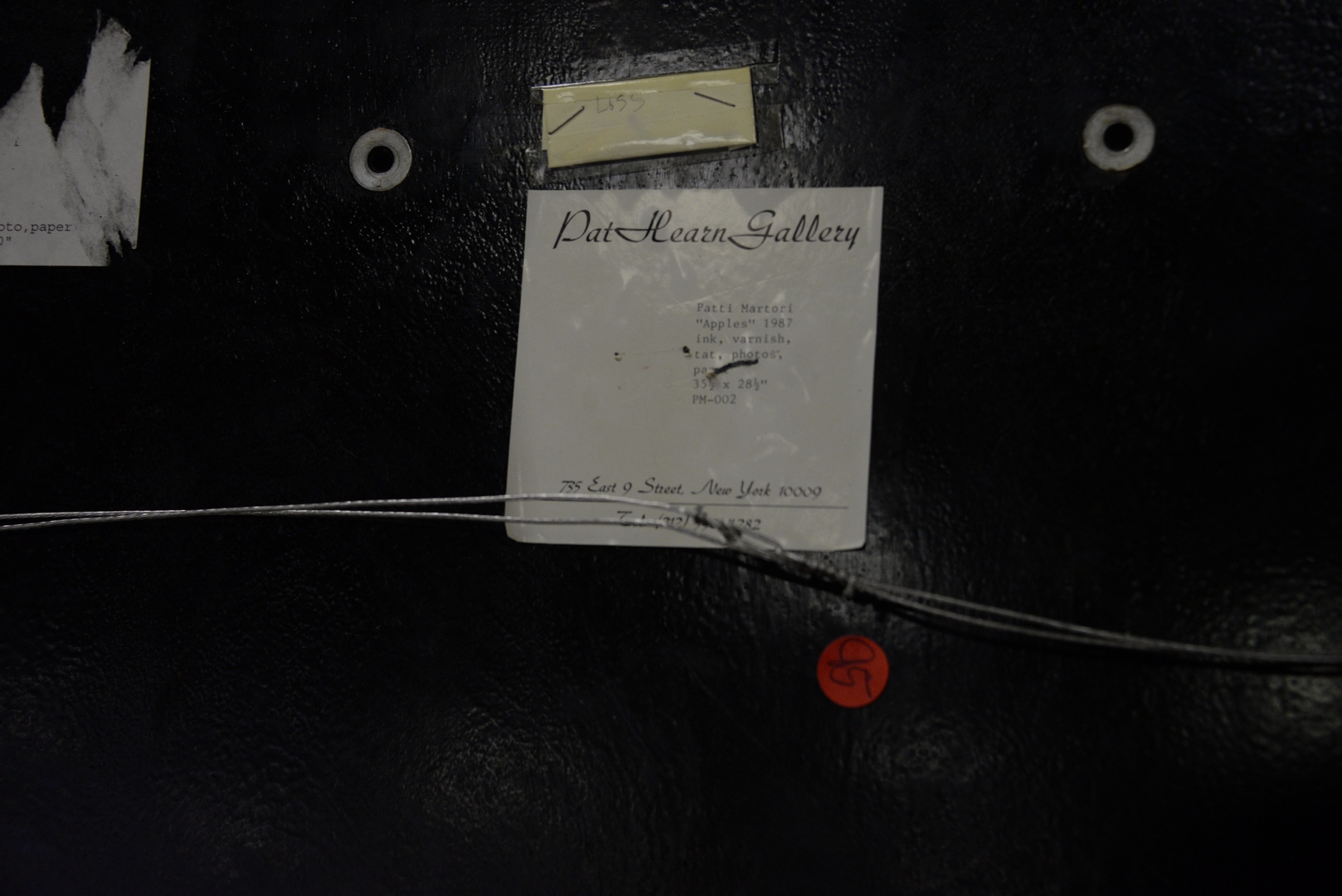 Lot 190: Patty Martori (American, b. 1956), Apples, 1987, mixed media on paper laid on panel, unsigned, 35 1/4″ x 28 1/4″, with a Pat Hearn Gallery label adhered to the reverse.