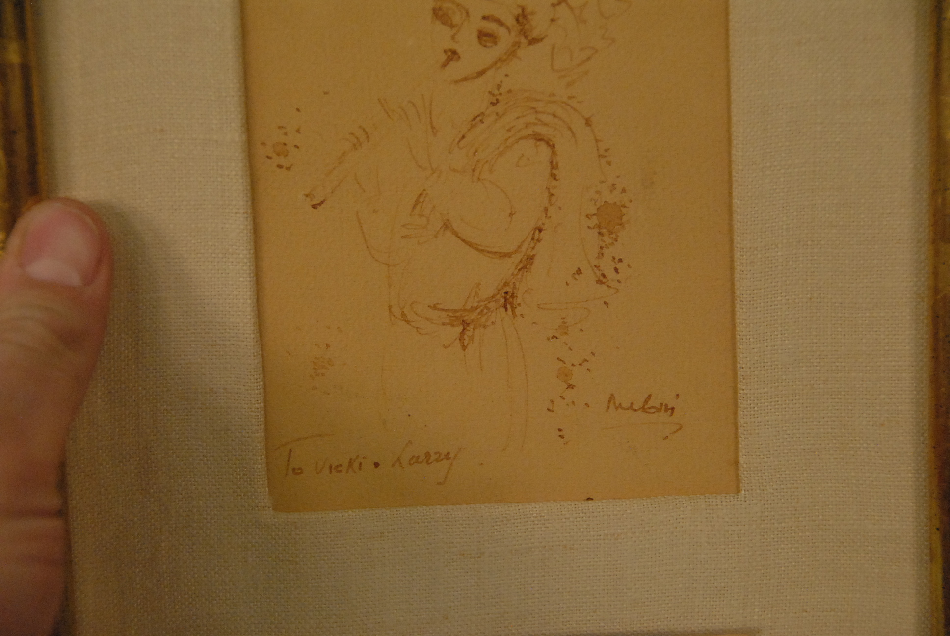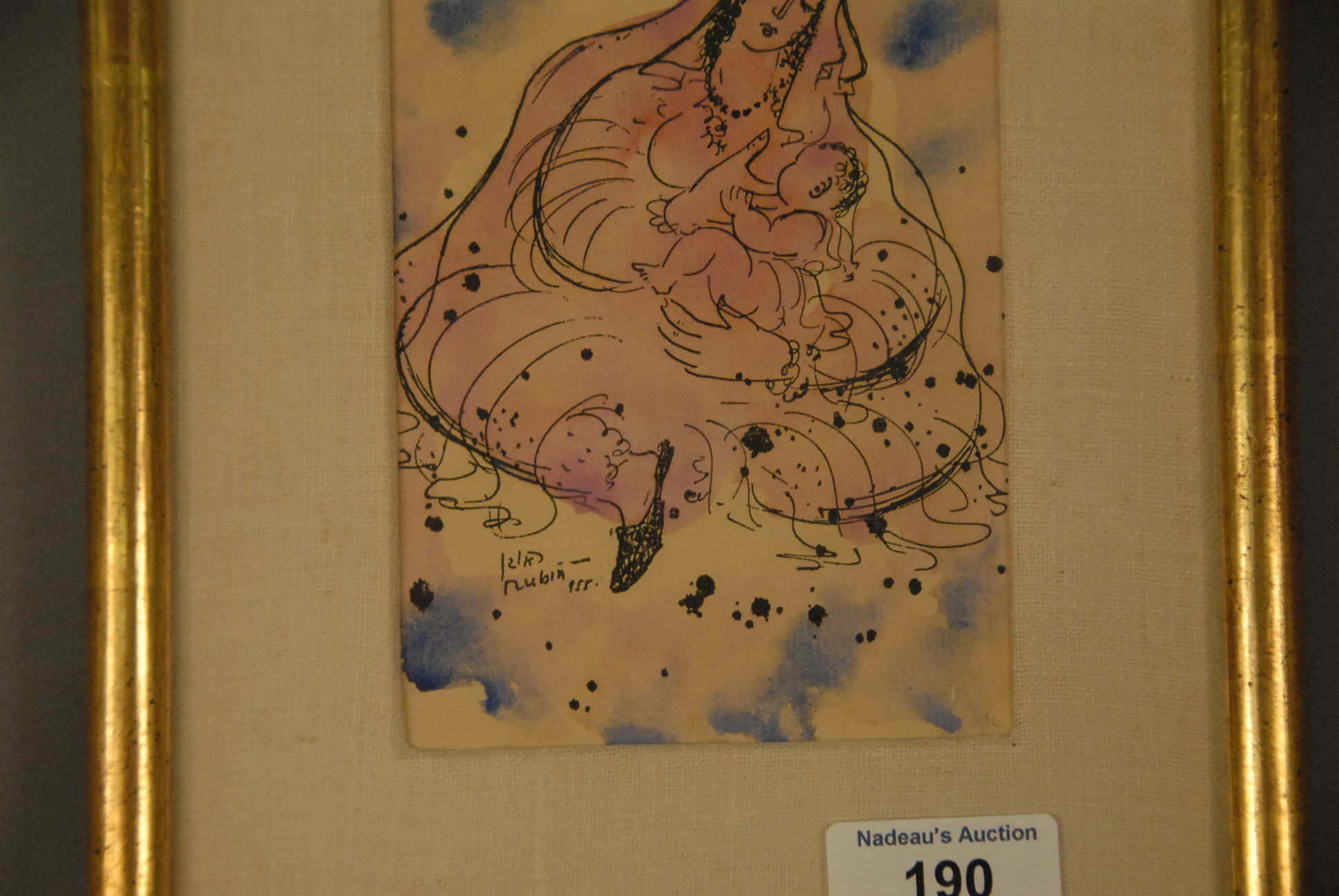 Lot 190: Reuven Rubin 1893-1974 two drawings in one frame watercolor and ink on paper presentation inscription ‘to Vicki and Larry’ each signed Rubin 4 3/4 x 3 3/4 double-framed 16 x 8