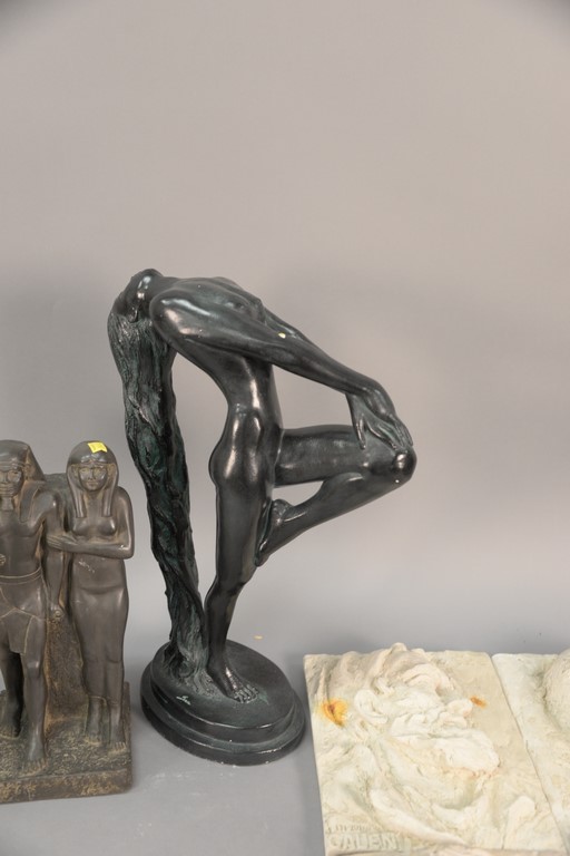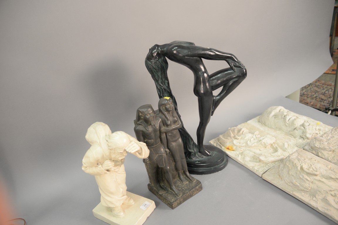 Seven plaster pieces to include Doris Appel plaques: Osler, Pasteur, Galen, and Oate of Hypocrisy 13 x 10, Salvini Carber figure, MFA plaster Egyptian figures, and an Austic Production sculpture. Provenance: Estate of Arthur C. Pinto, MD