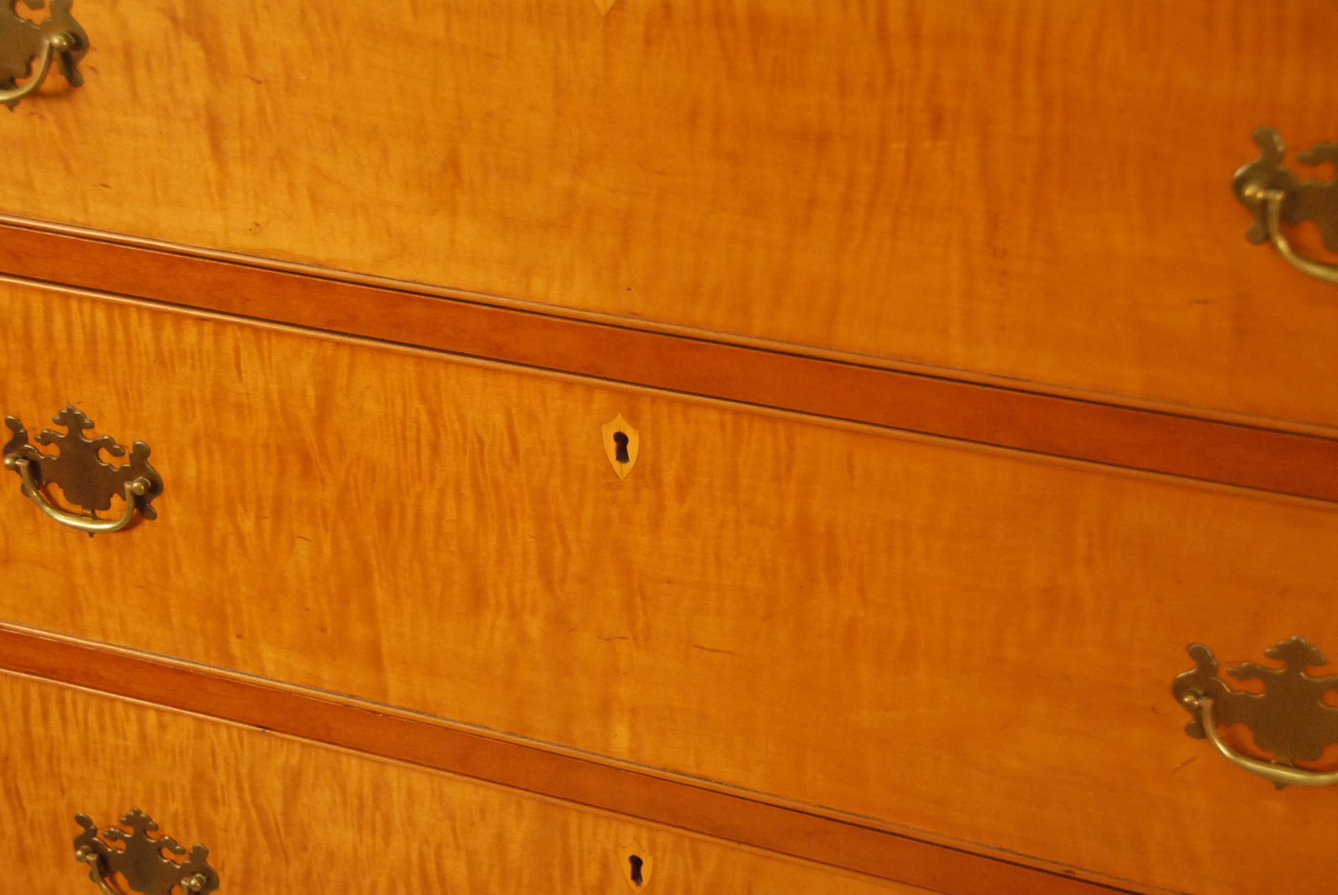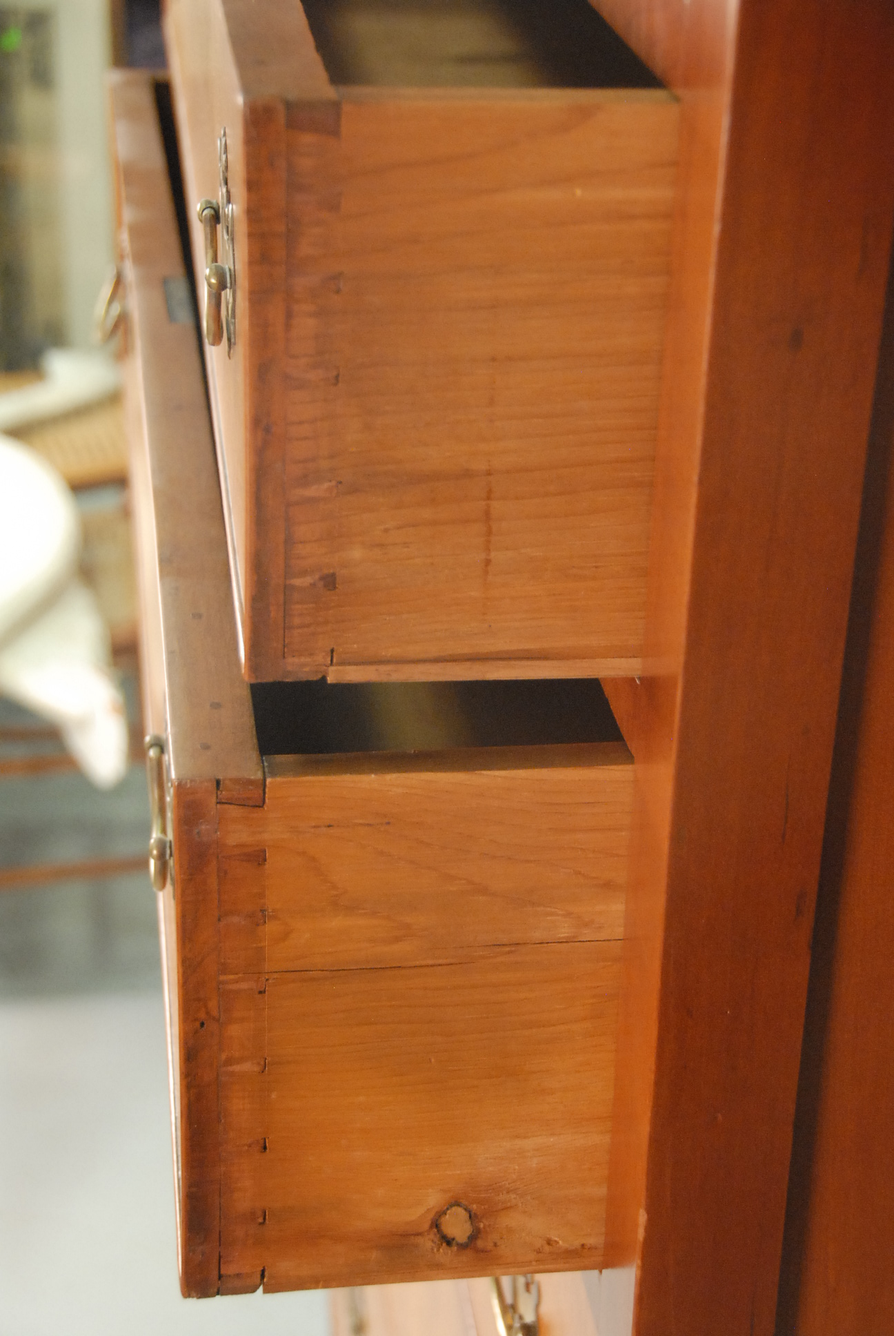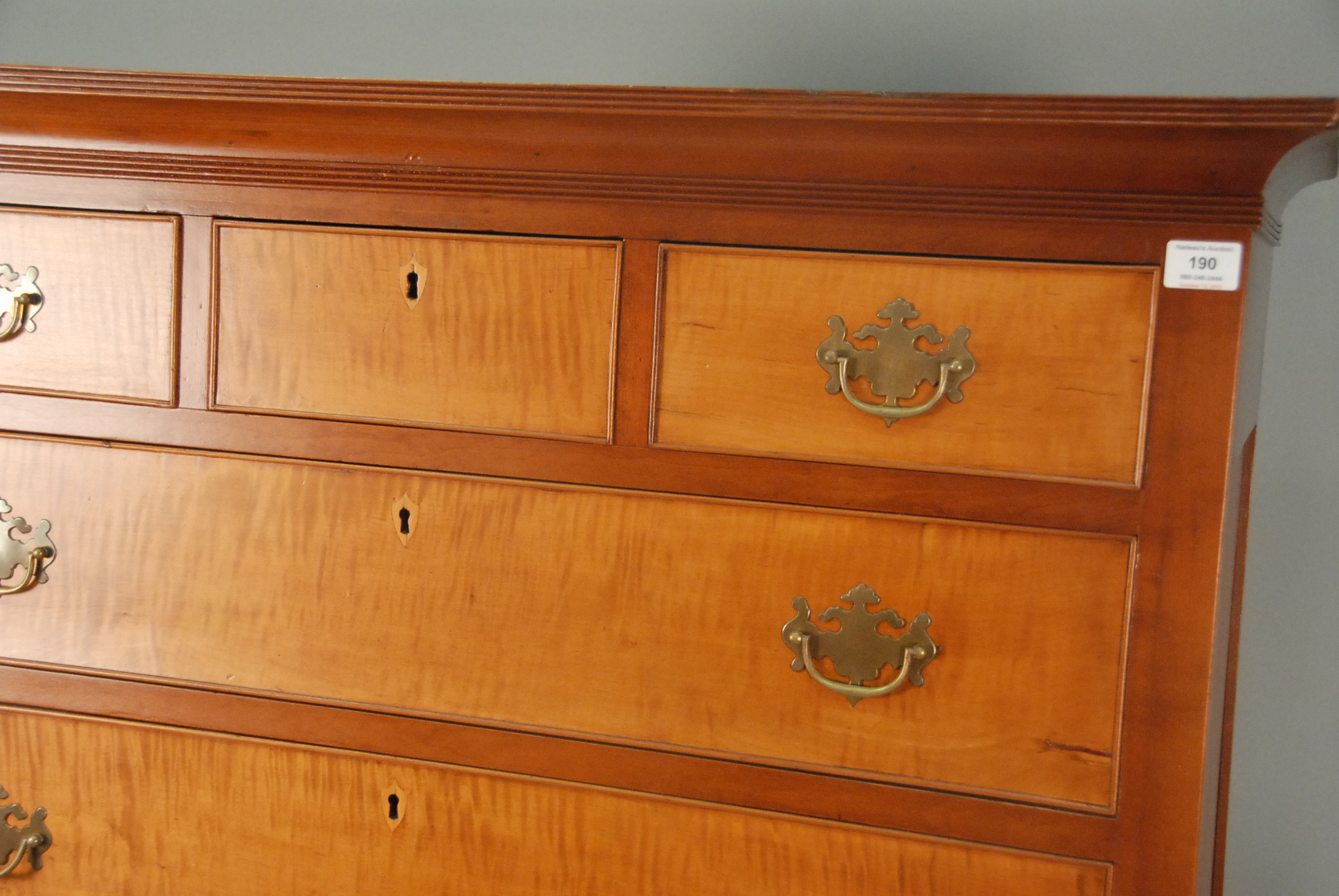 Lot 190: Sheraton, cherry, tall chest, three over five drawers with figured maple drawer fronts, circa 1820-1830. ht. 65in. wd. 39 3/4in.