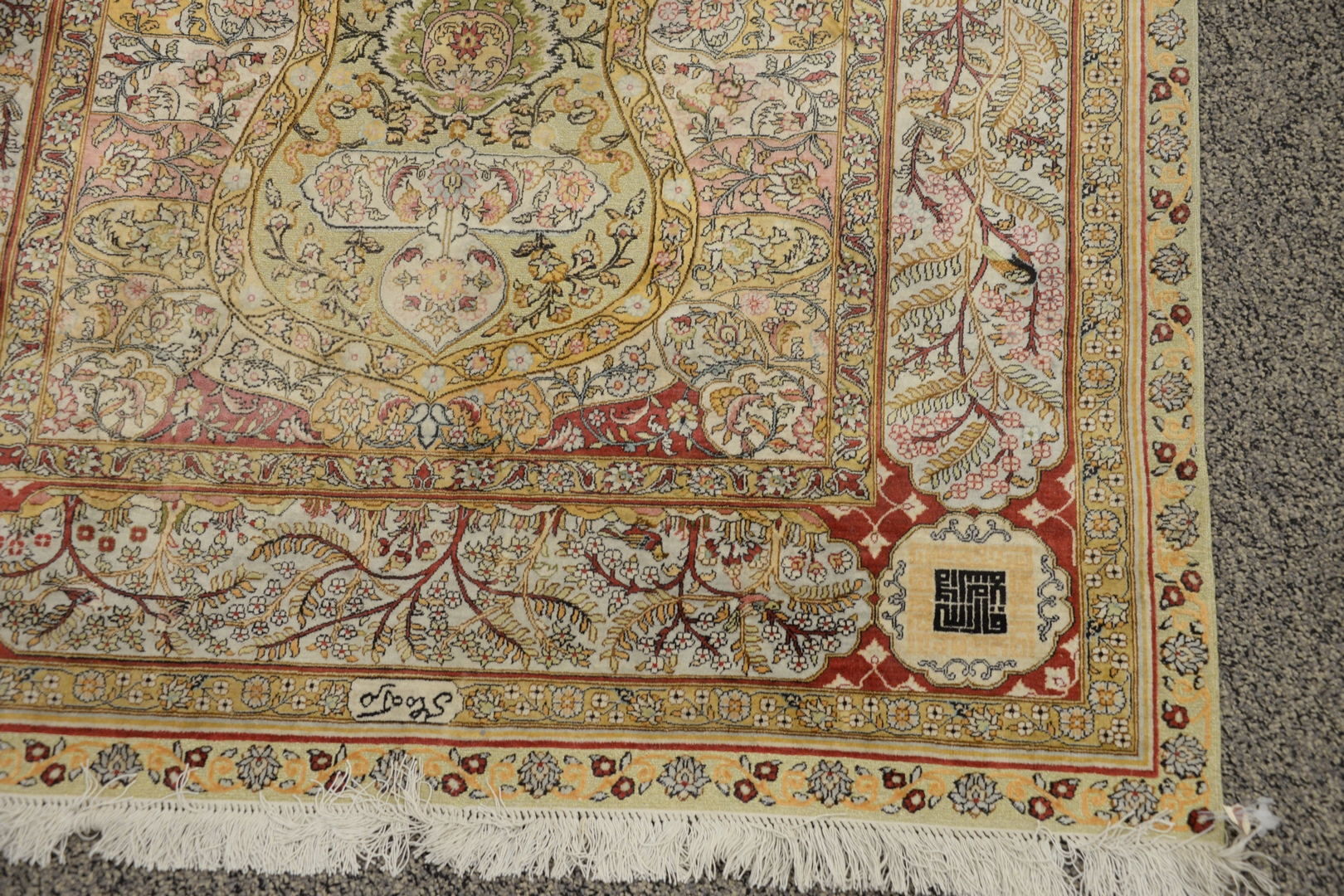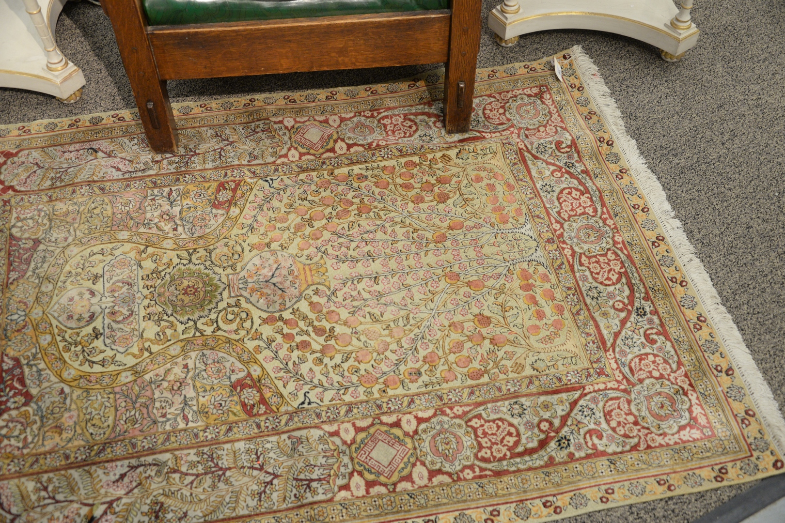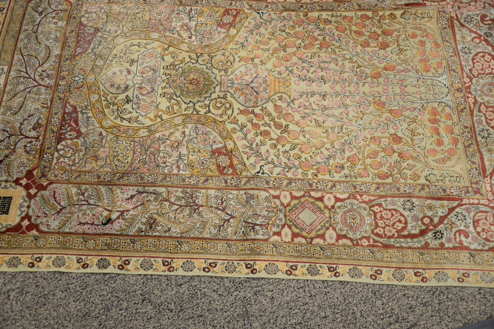 Silk Oriental Prayer Rug with metal threading, 3′ 7 x 5′.