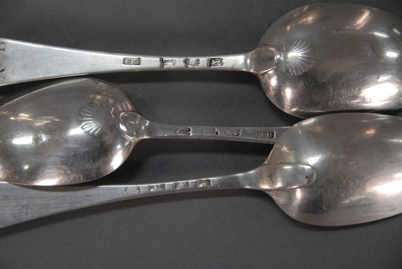 Three early English silver spoons, one pair George II by Benjamin Cartwright 1755 London