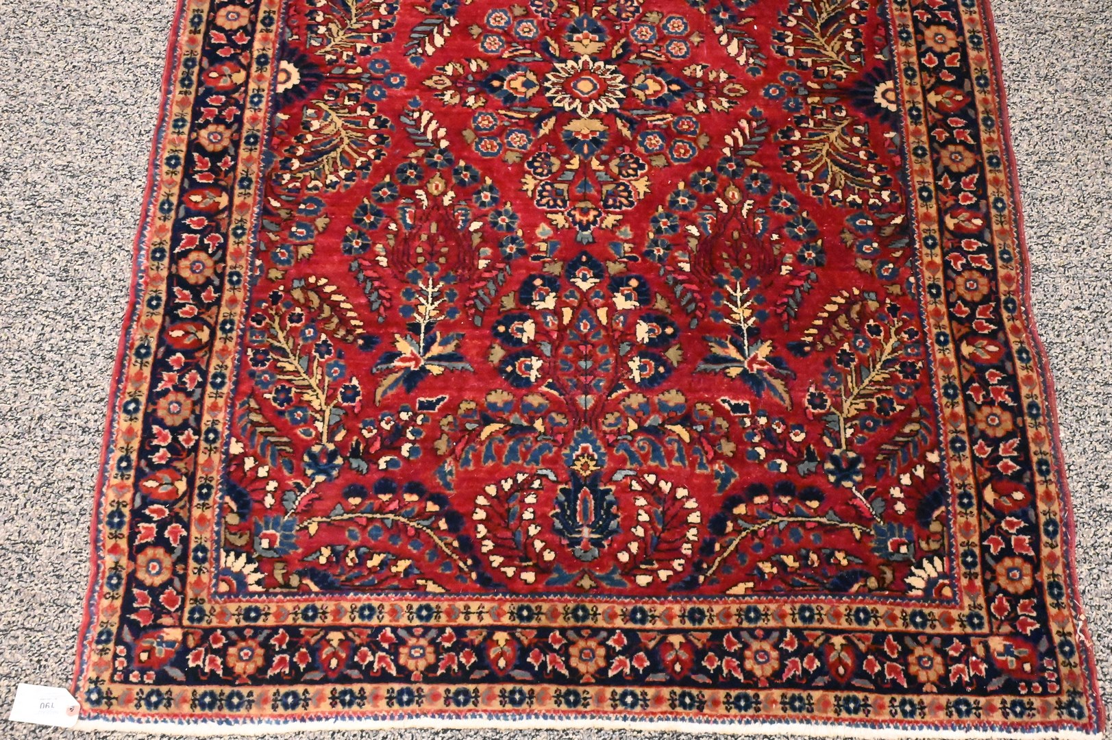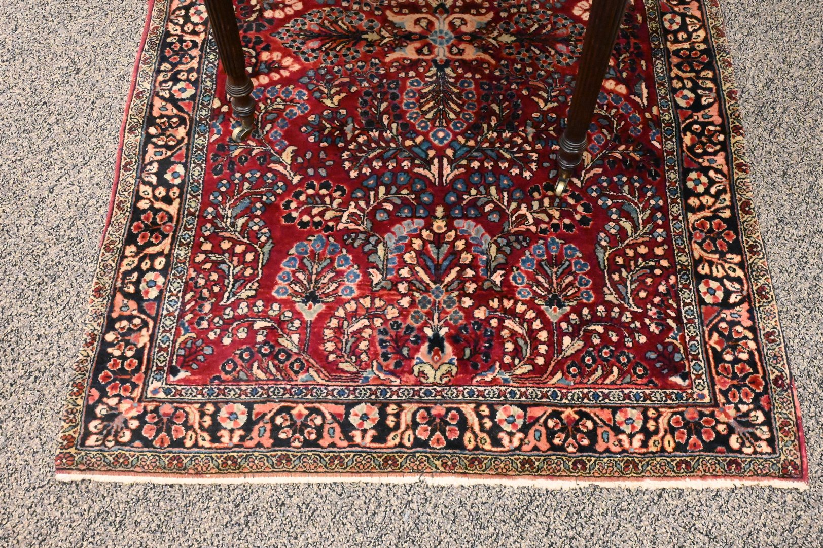 Two Sarouk Oriental Throw Rugs, 3′ 6″ x 5′ along with 3′ 4″ x 5′ 1″.