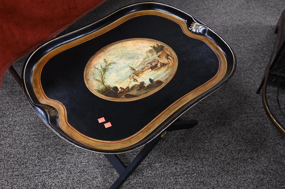 Eight Piece Glass Group, to include four Krosno pieces, two under plates, center bowl and a D’Argental bowl (as is), tallest 10 1/2 inches; along with tray top table.