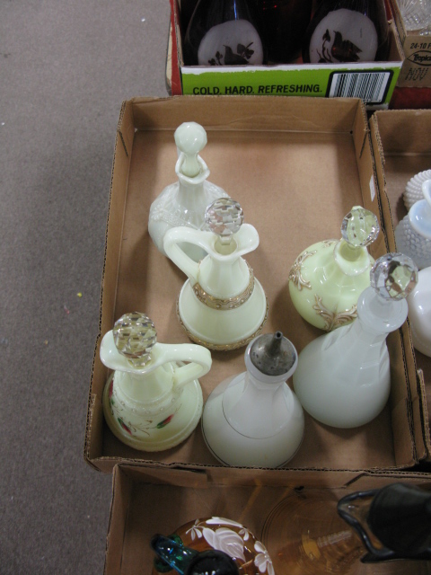 2 box lots of various cruets including custard glass & amber glass