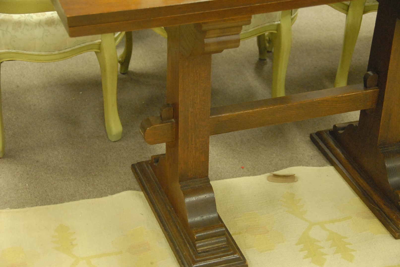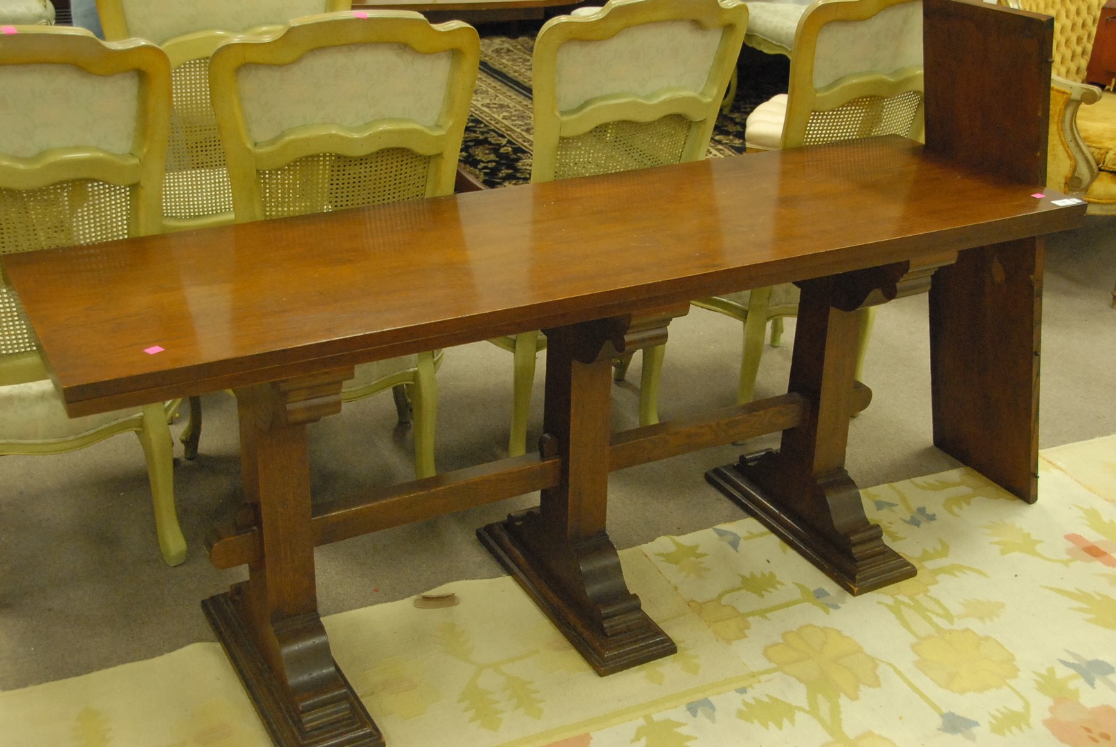 Drexel walnut extension table on tressel base. ht. 29 in. open: 40 x 70 closed: 20 x 70