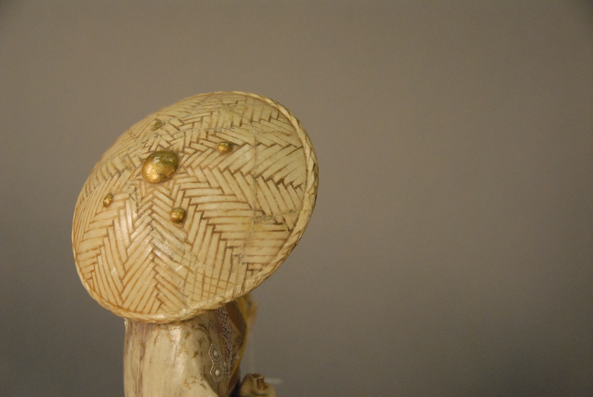 Group of nine Satsuma pieces to include a pair of bowls, scholar vase, round covered box, two small vases, small bowl, jar missing cover, and Satsuma figure of a scholar. bowls: dia. 6 in.