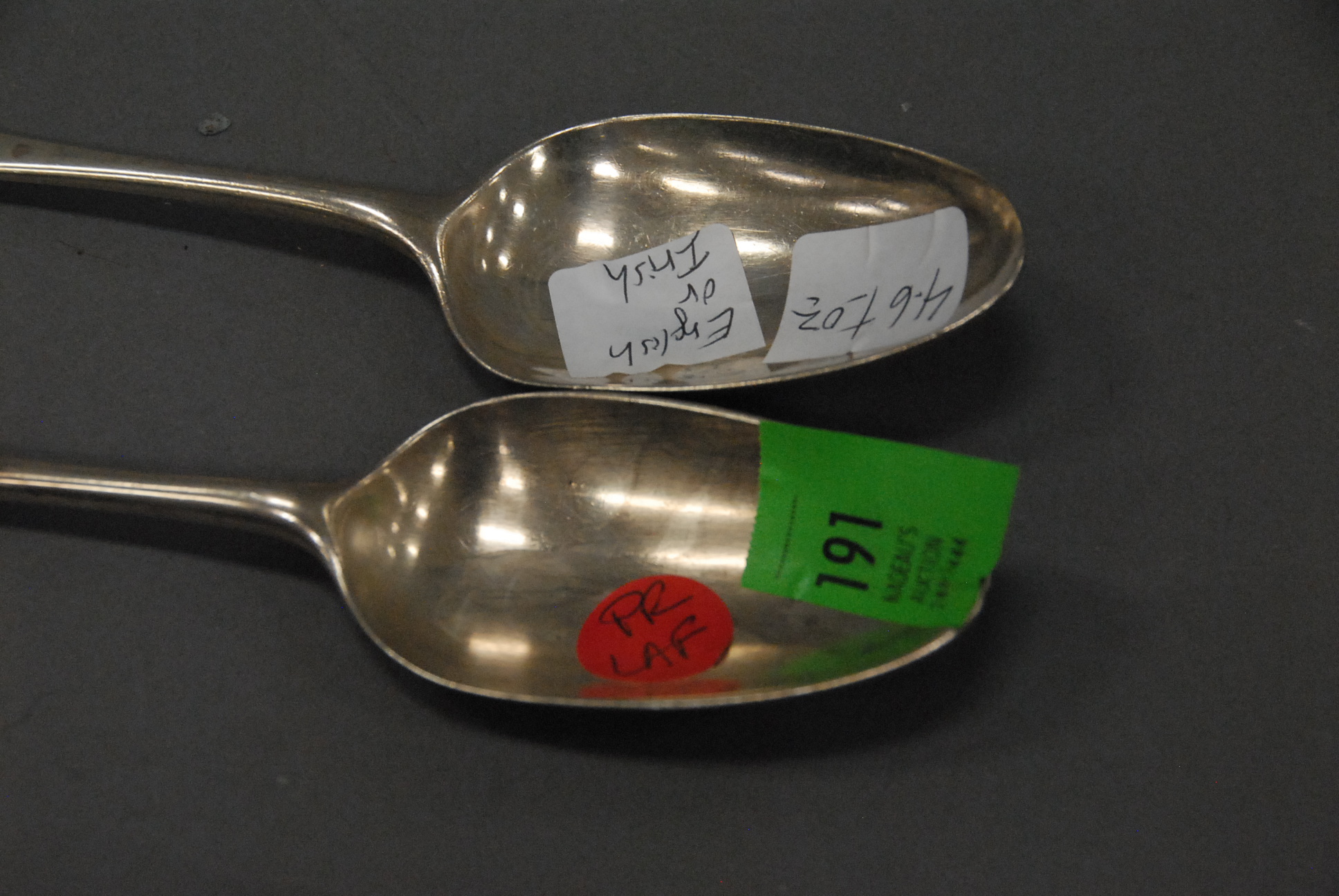 Pair of English or Irish silver spoons, 4.6 troy oz.
