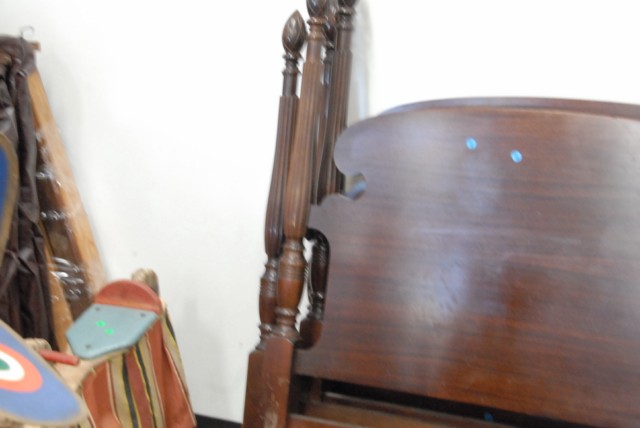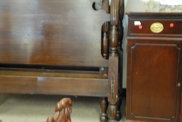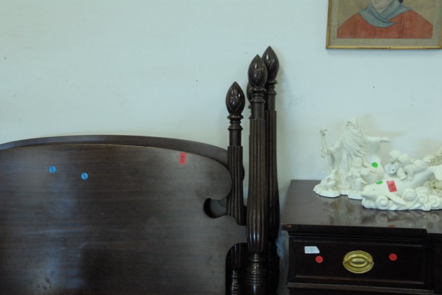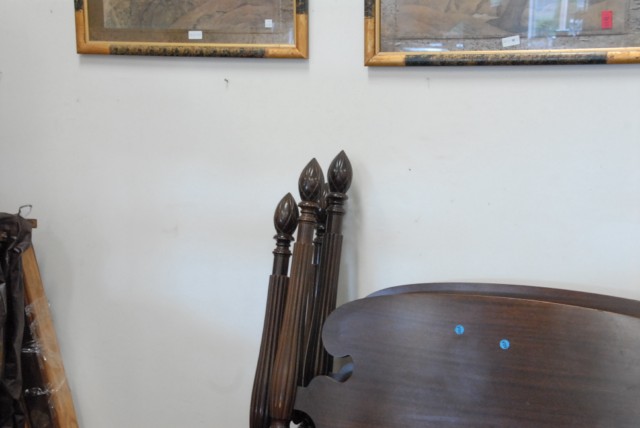 Pair of mahogany twin beds with pineapple tops.