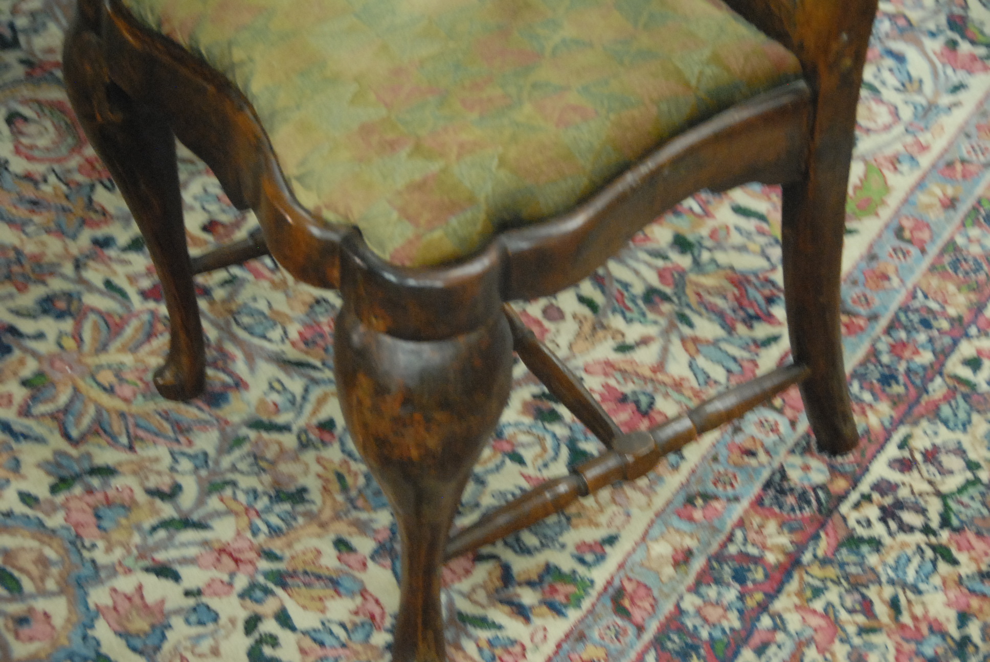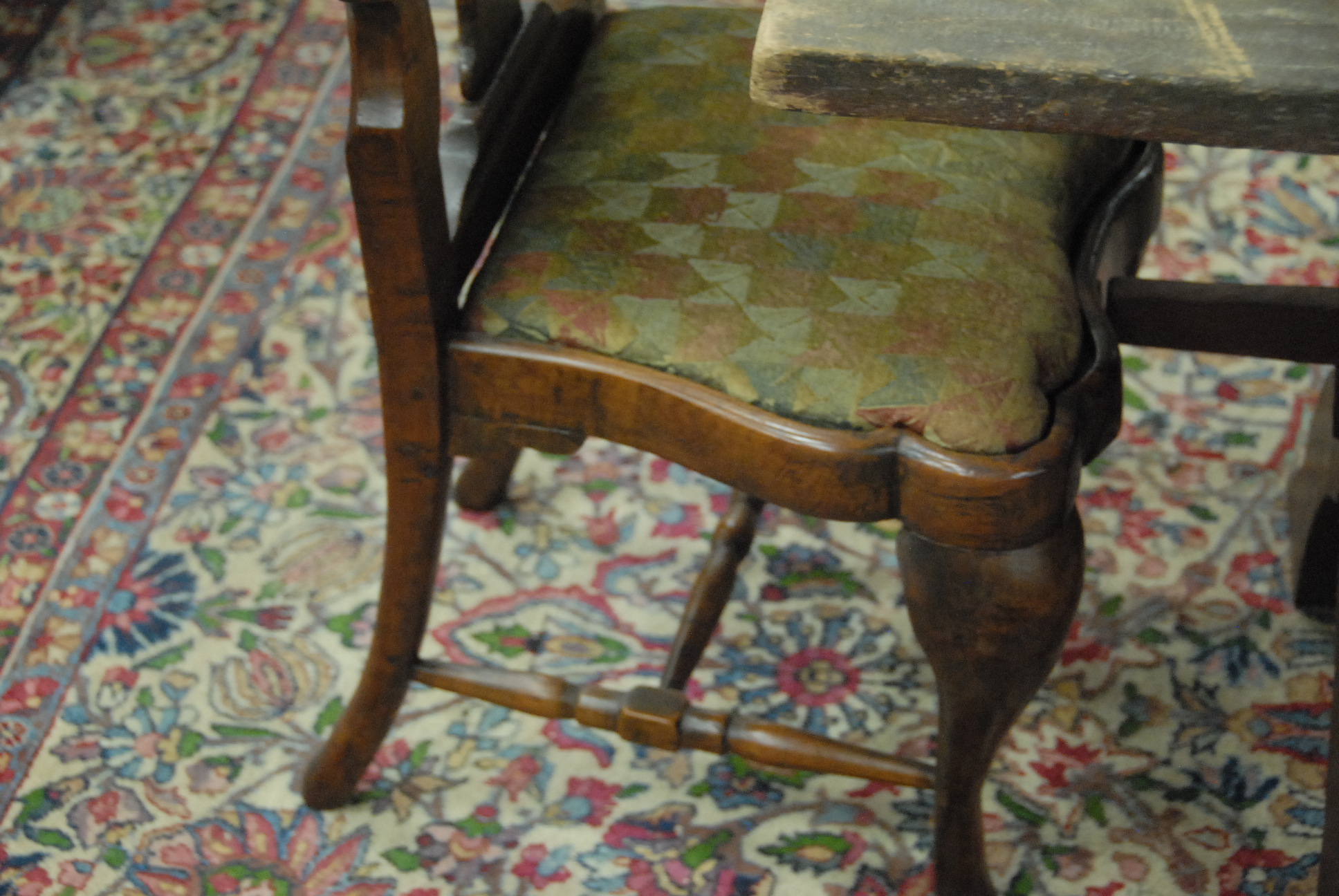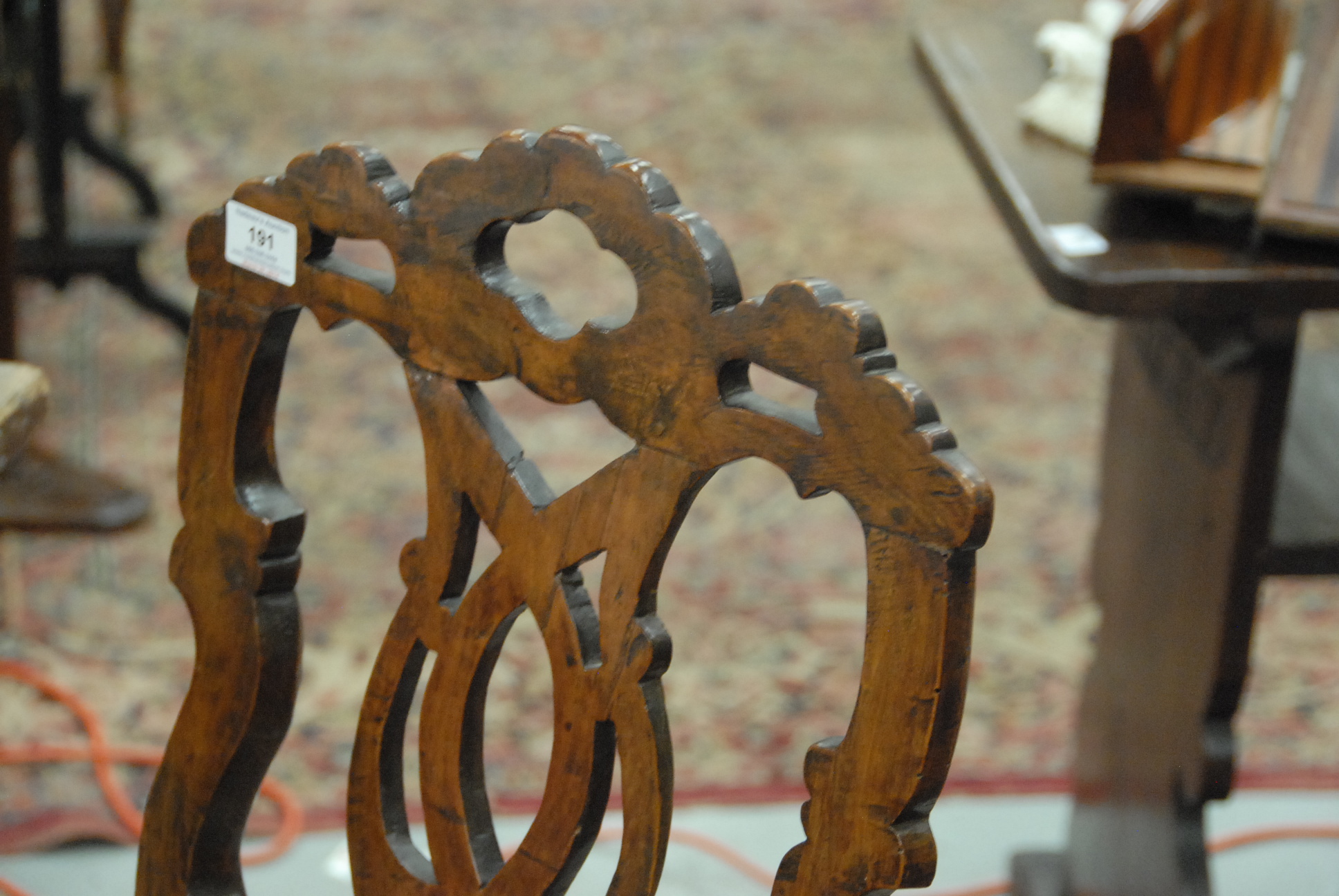 Lot 191: Set of four Dutch Rococo style carved fruitwood side chairs with upholstered slip seats some restoration. ht. 41in. wd. 18 1/2in. dp. 15in.