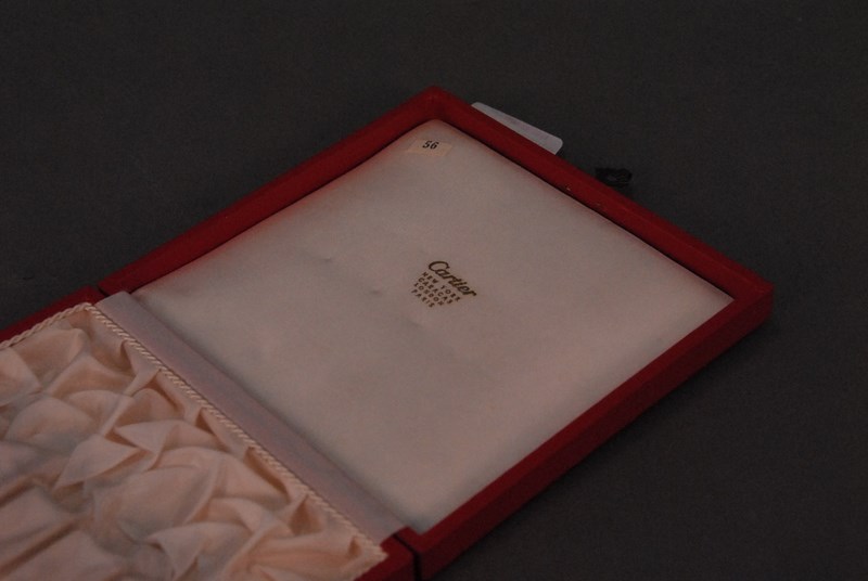 Set of six Cartier silver demi spoons, each gilt decorated with enameled handles in fitted Cartier box.