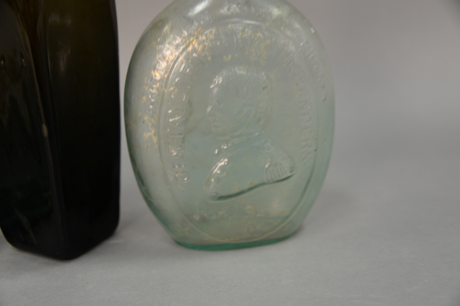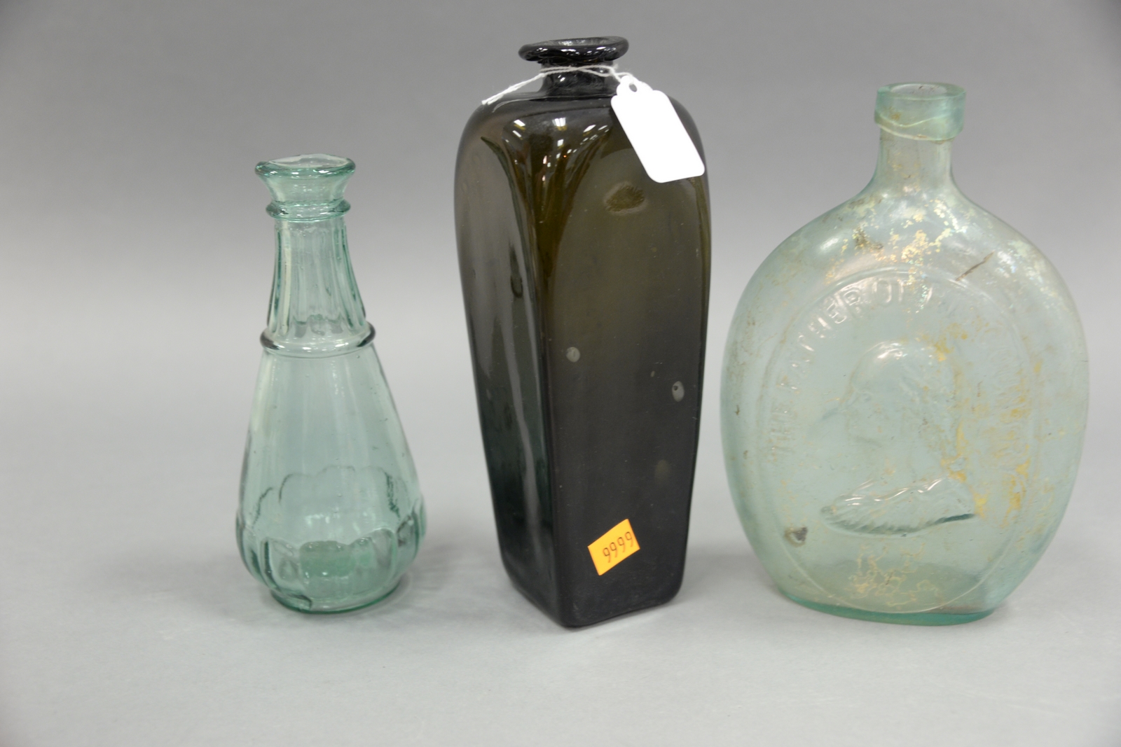Three bottles including George Washington The Father of His Country and two liquor bottles. ht. 7 1/2in. to 9in.