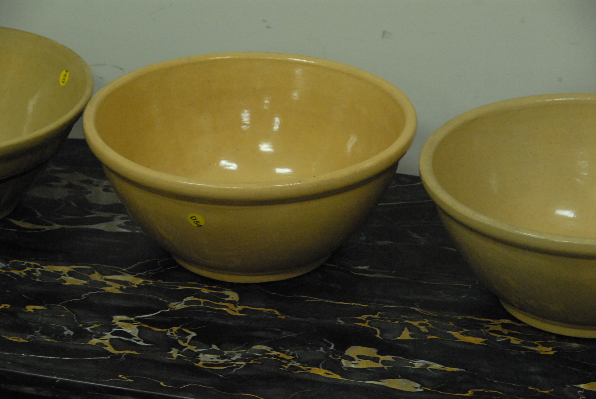 Three large yellow ware batter bowls