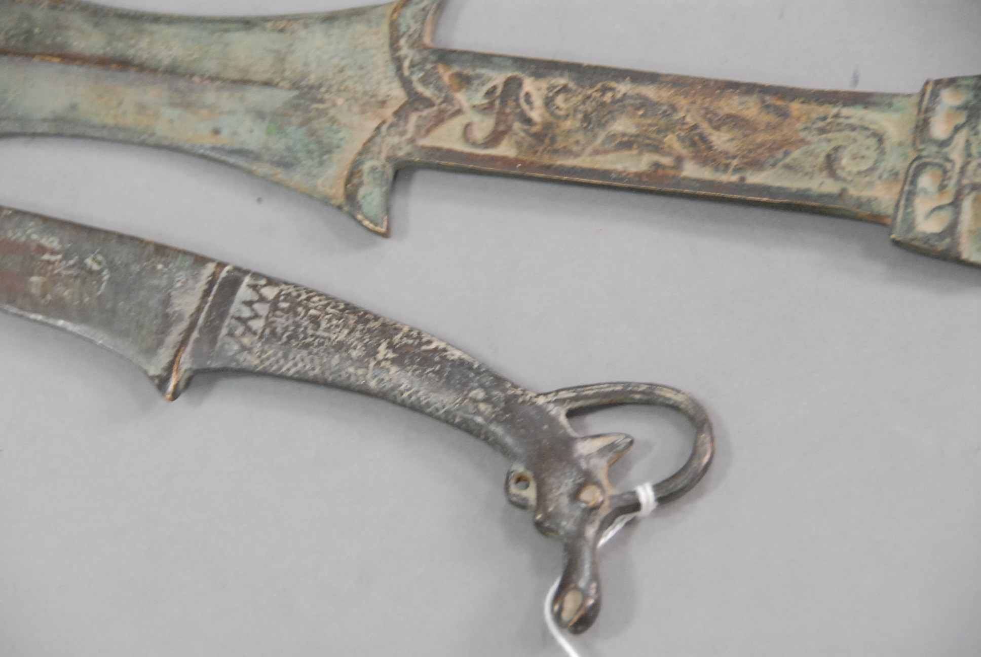 Lot 191: Two bronze archaic daggers, one with dragon