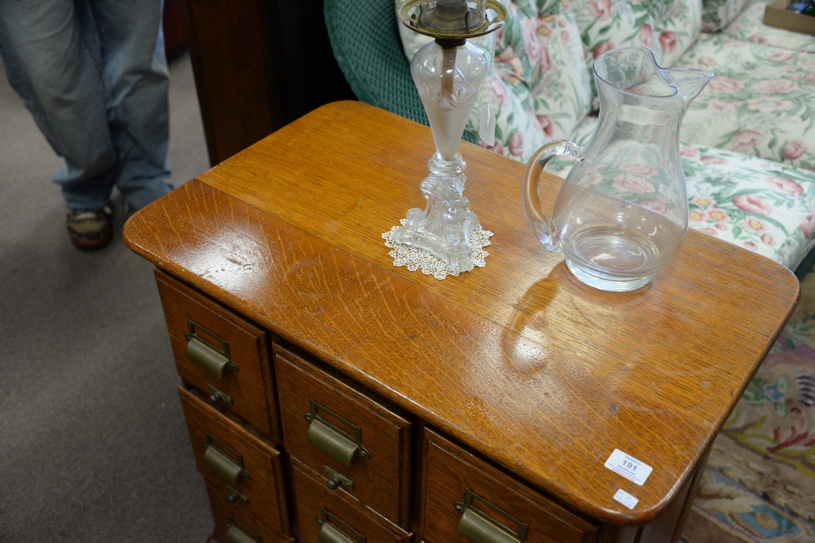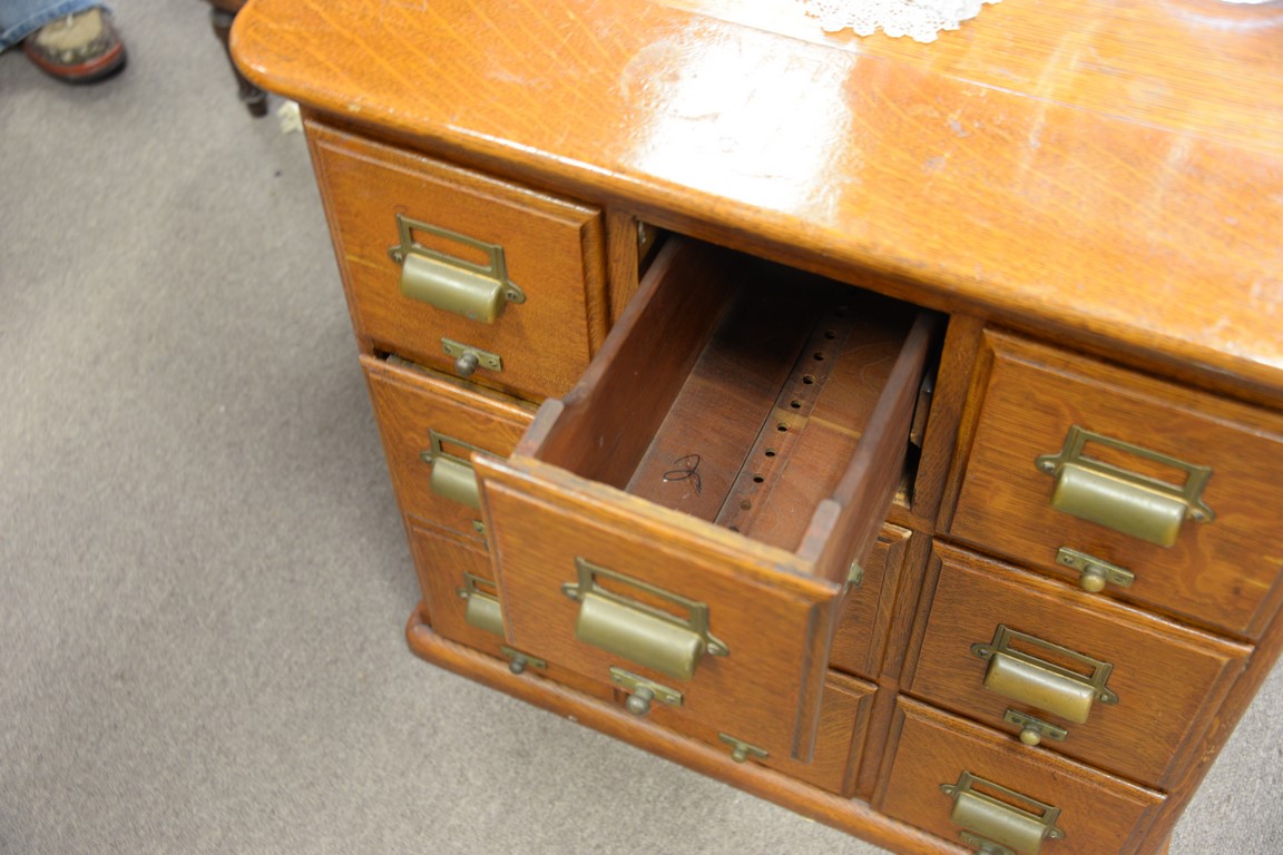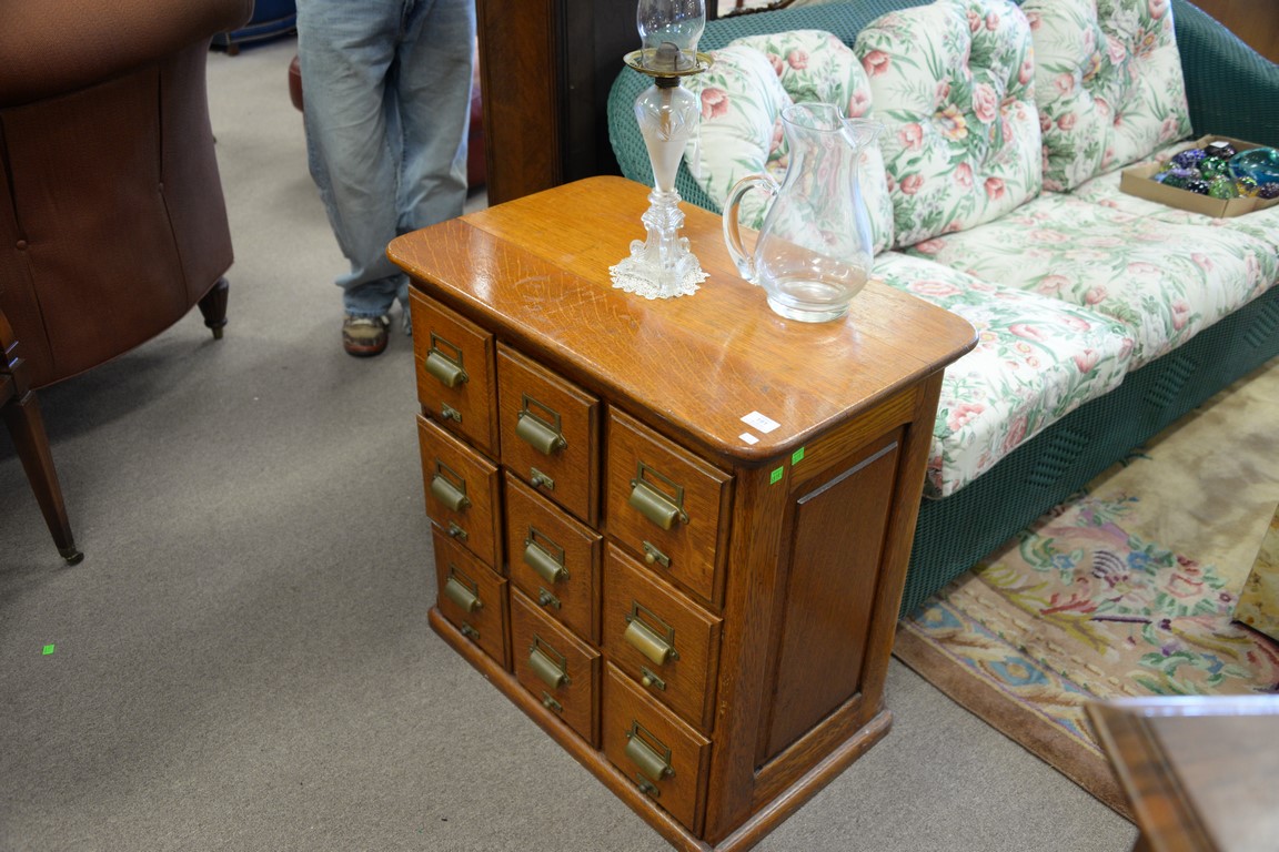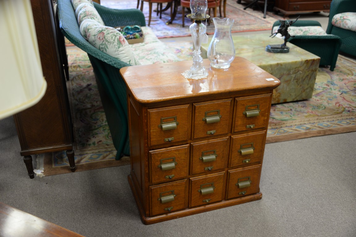 Victorian oak nine drawer cabinet. ht. 29in., top: 18 x 29