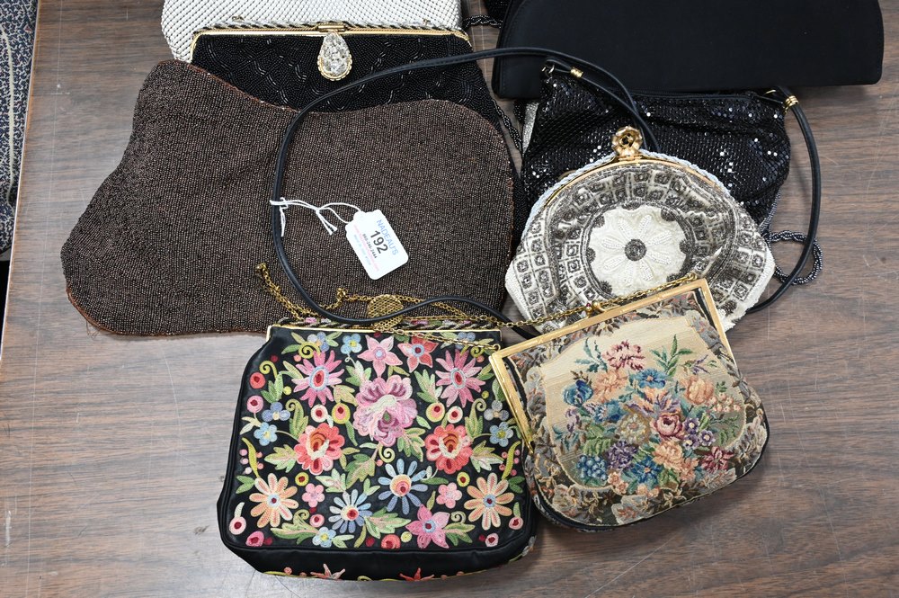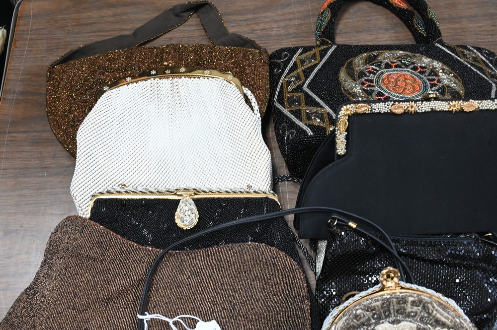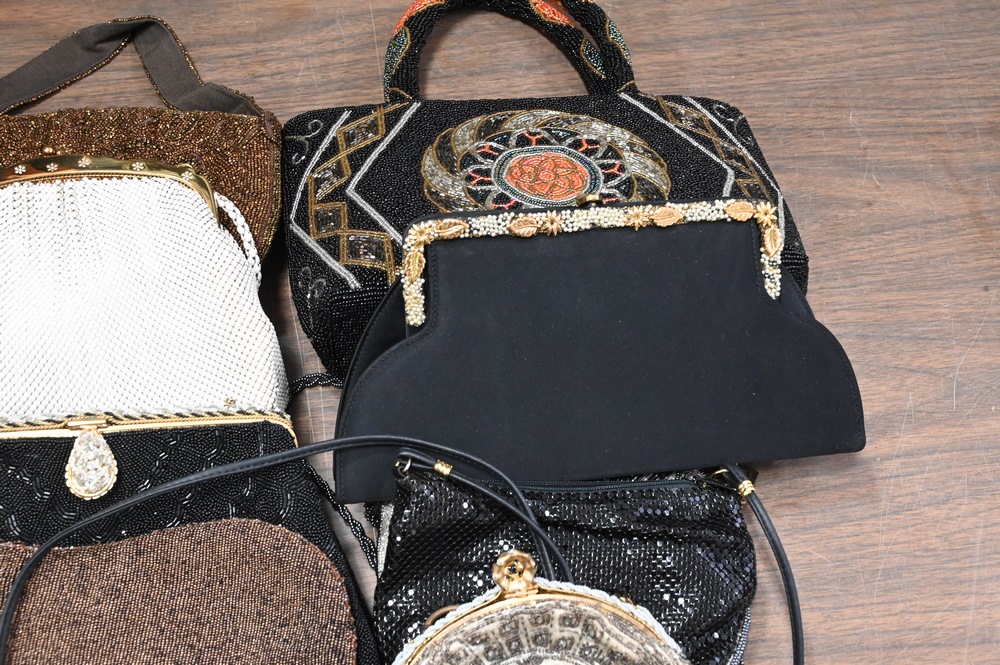 Lot 192: 11 Beaded Handbags/Purses, to include 3 marked Made in France, one Saks Fifth Avenue, Whiting & Davis, etc.