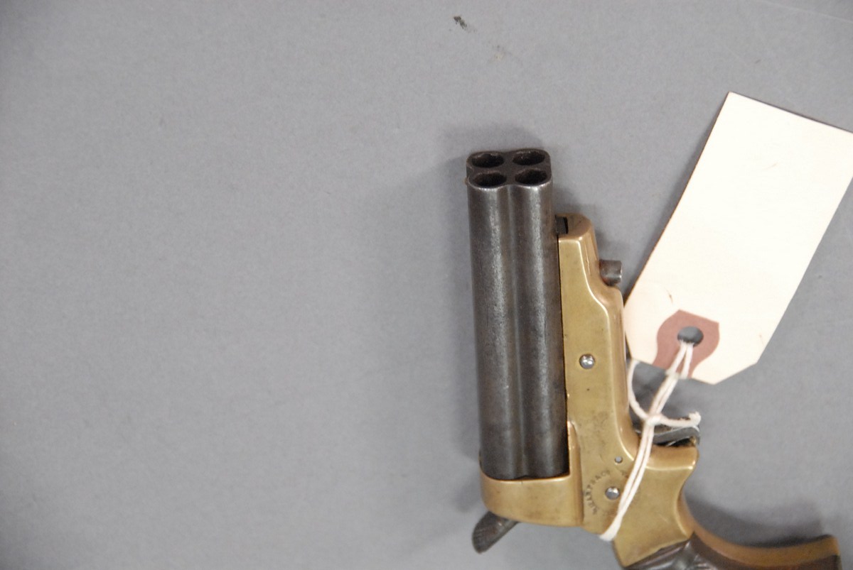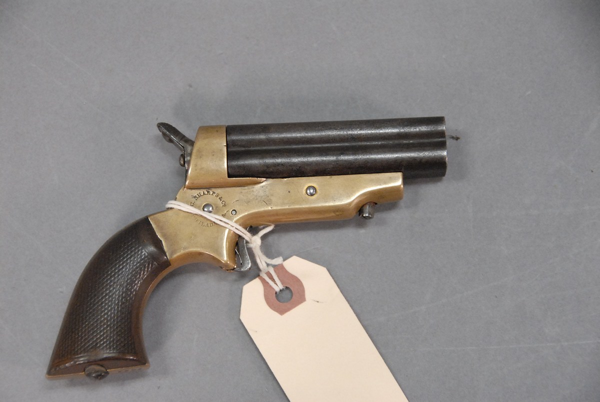 C. Sharps & Co model 2A pistol, Philada. PA, 4 barrel pepper box, .30 caliber R.F.228 SN-7051