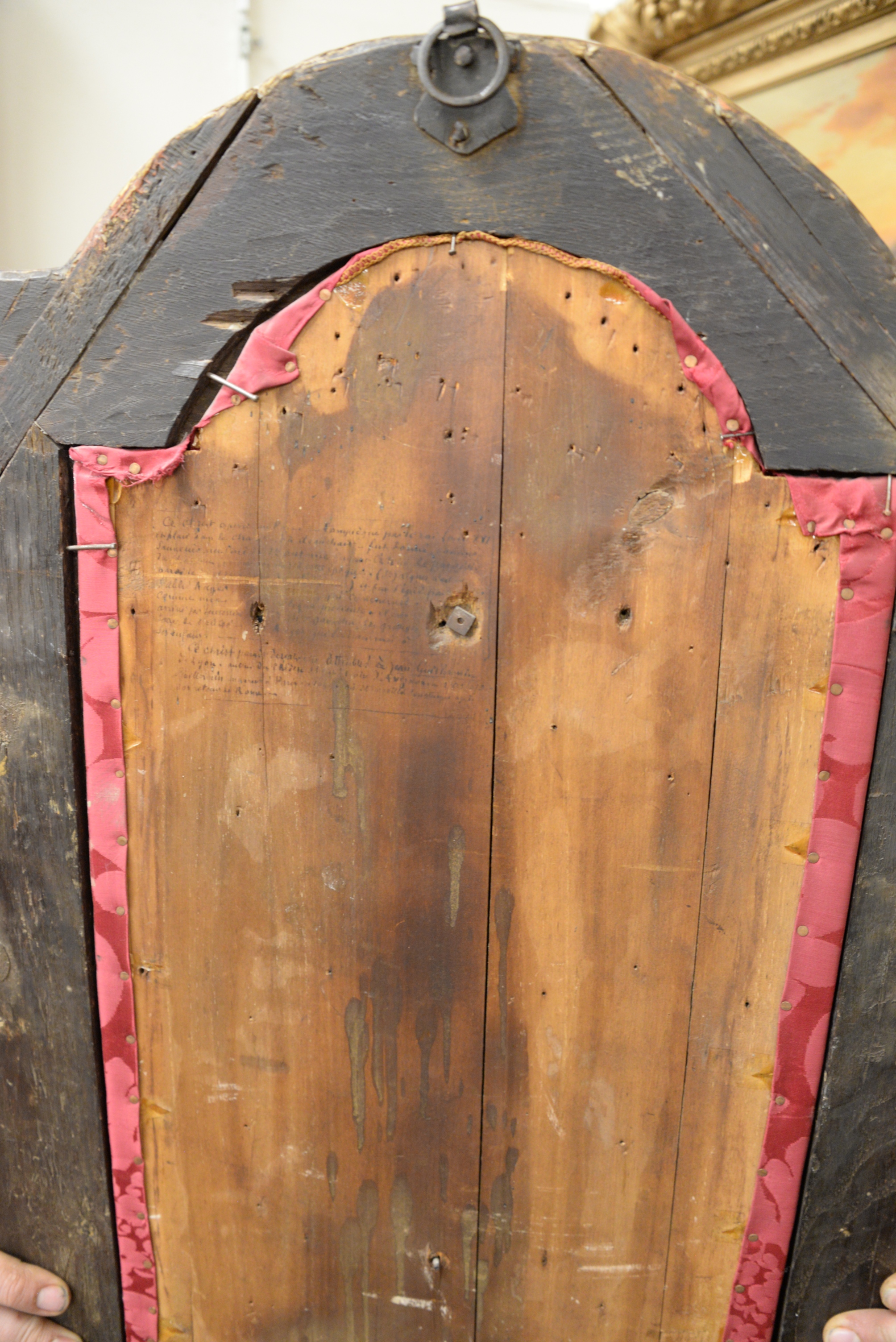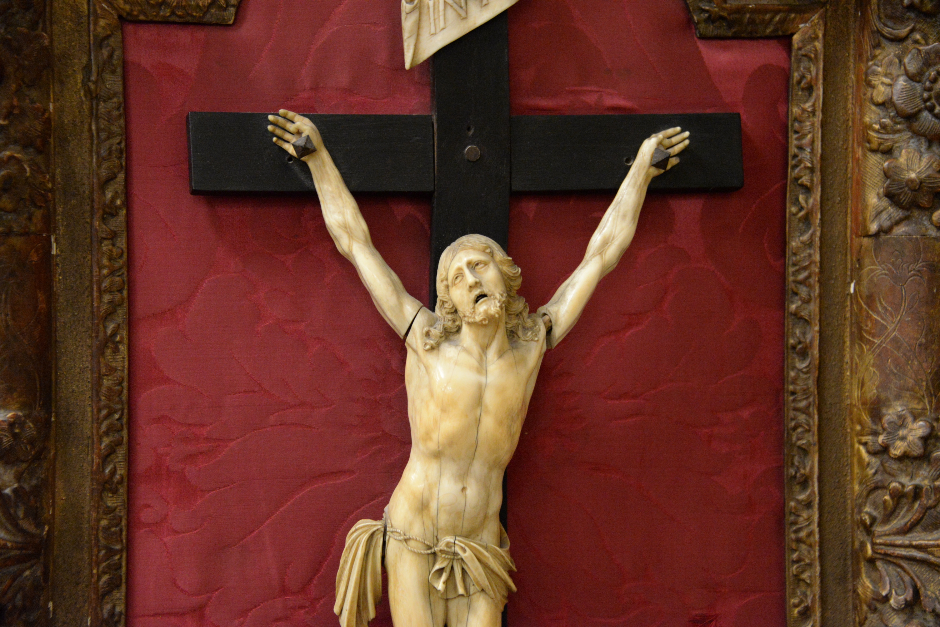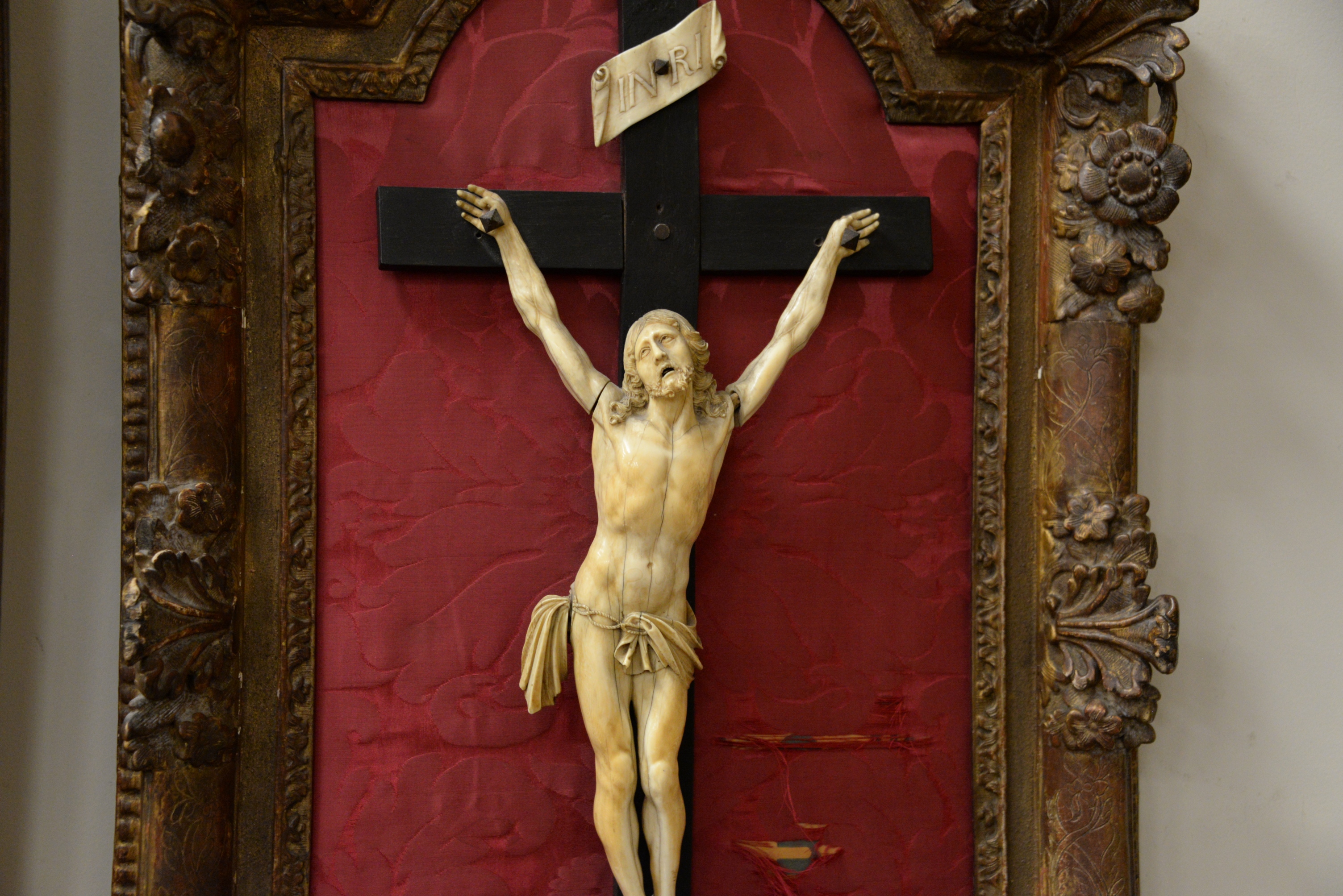 Figure of the Crucifixion, French or Flemish, late 17th century, within a giltwood Louis XV frame, height of Christ 15 inches, total height 29 inches, width 19 inches. Provenance: Sotheby’s New York, 23 -24 November 1984, lot 61. Please note: This item cannot be purchased or shipped by bidders residing outside of the United States or California, Hawaii, Nevada, New Jersey, New York, Washington, Oregon, or District of Columbia. If this is purchased by a bidder in one of the above mentioned locations or attempts to ship this item to one of the above mentioned locations, bidder will forfeit the item and be responsible for any incurred fees such as a restocking fee.