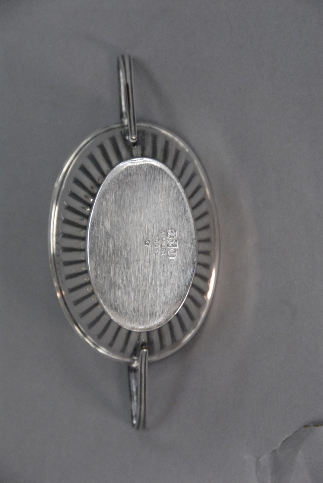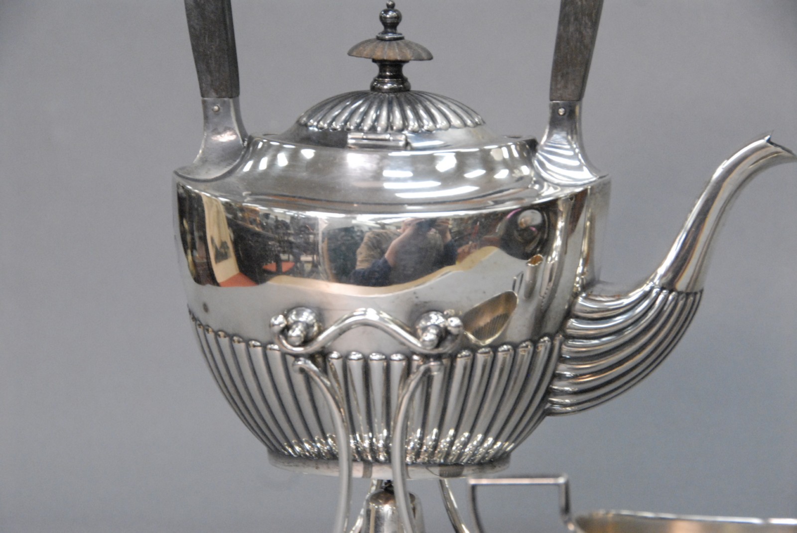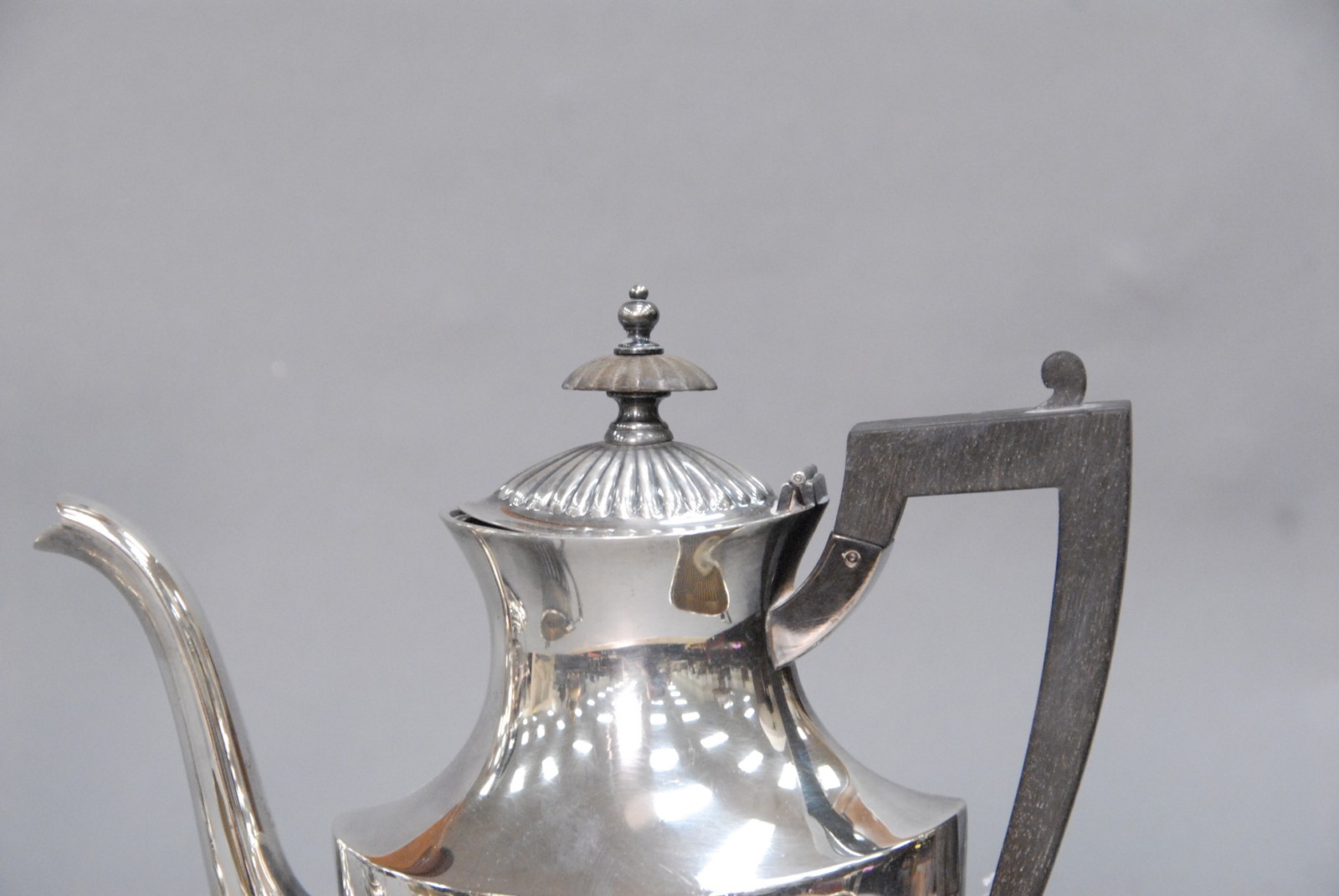 Gorham sterling silver four piece tea set with tilting pot and wood handles.