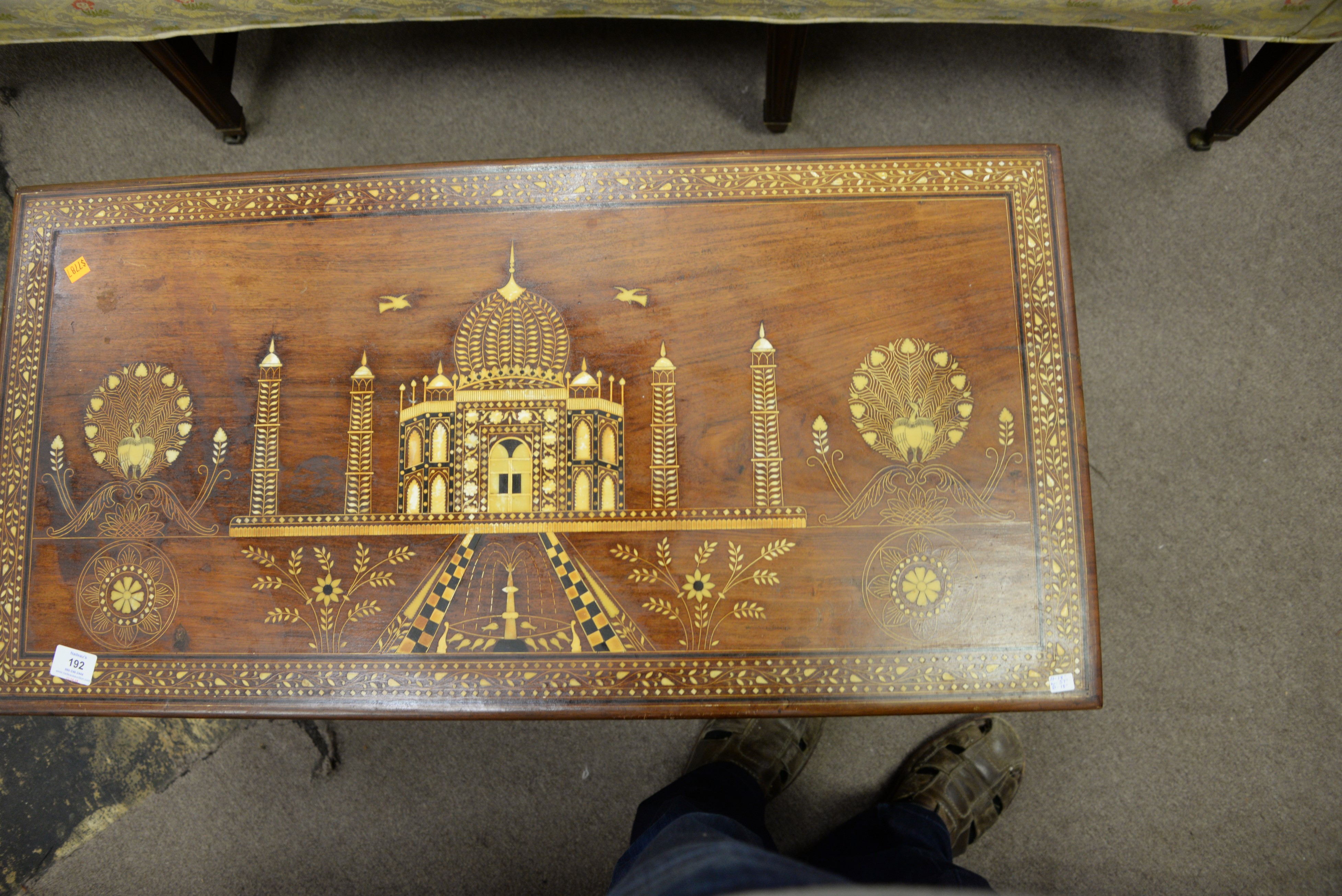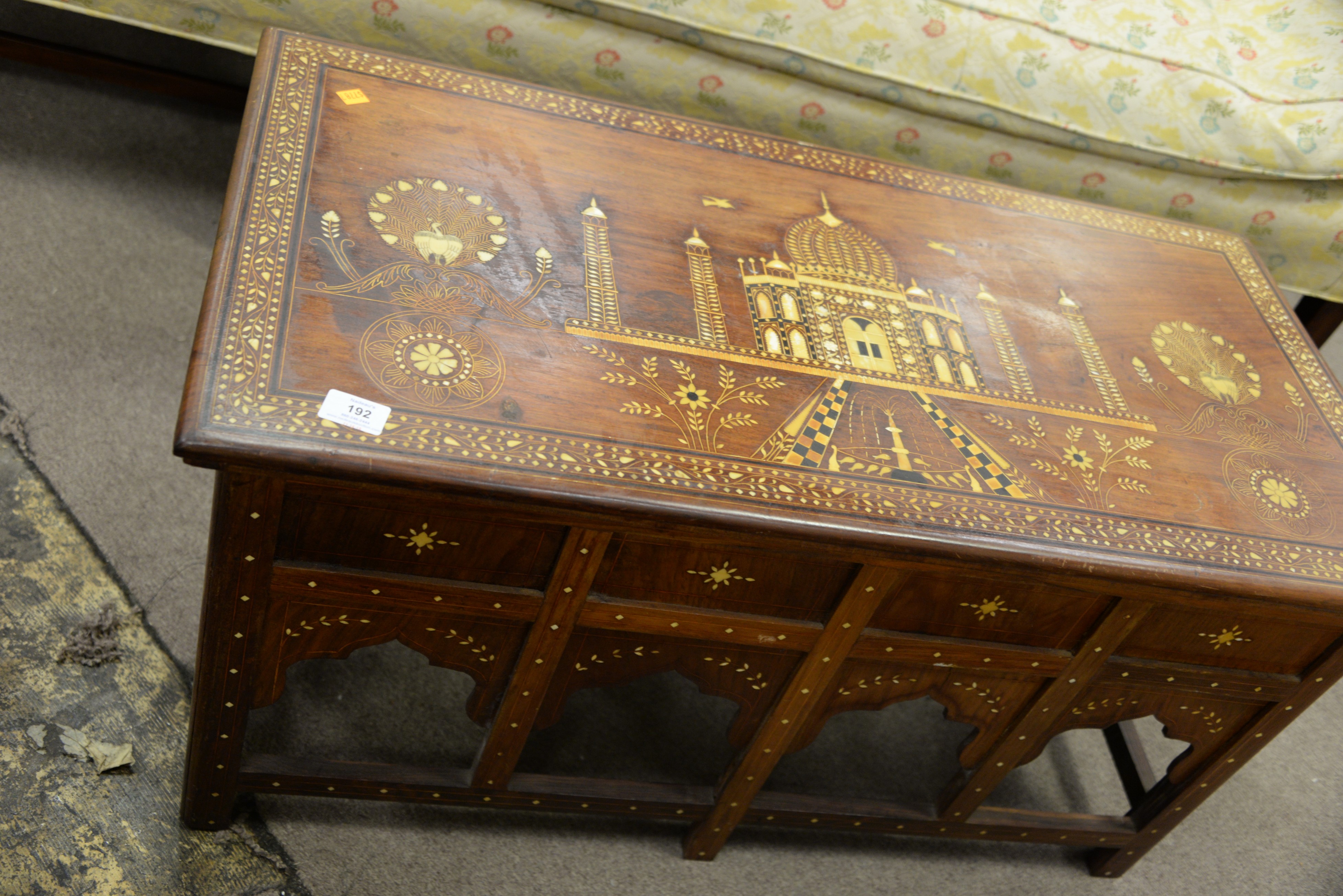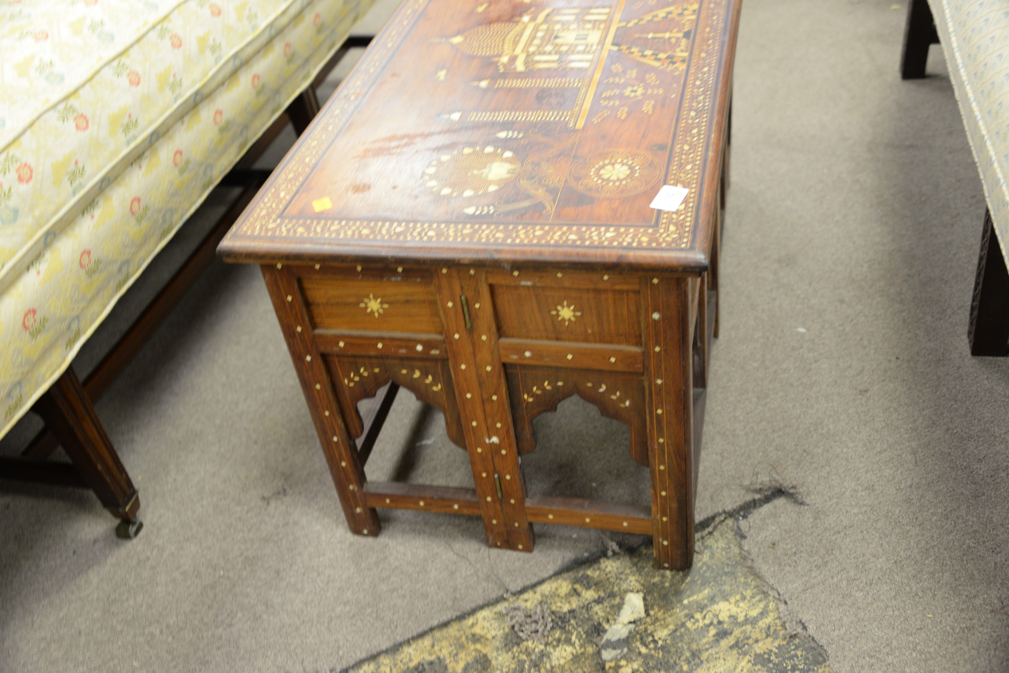 Inlaid Mid-Eastern coffee table. ht. 18 in. top: 18 x 37