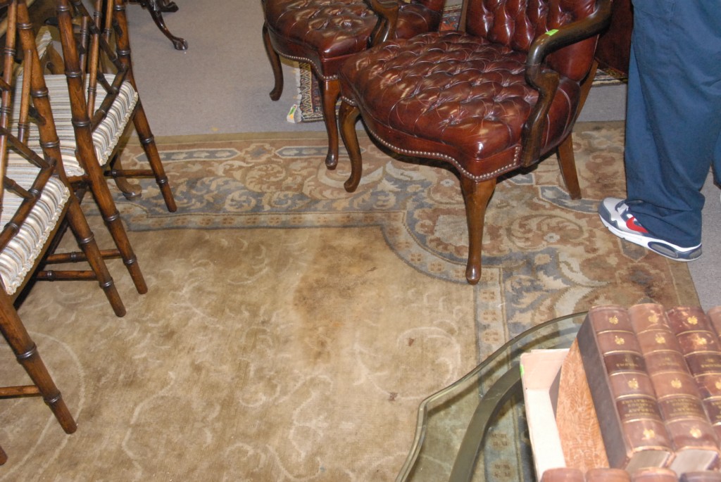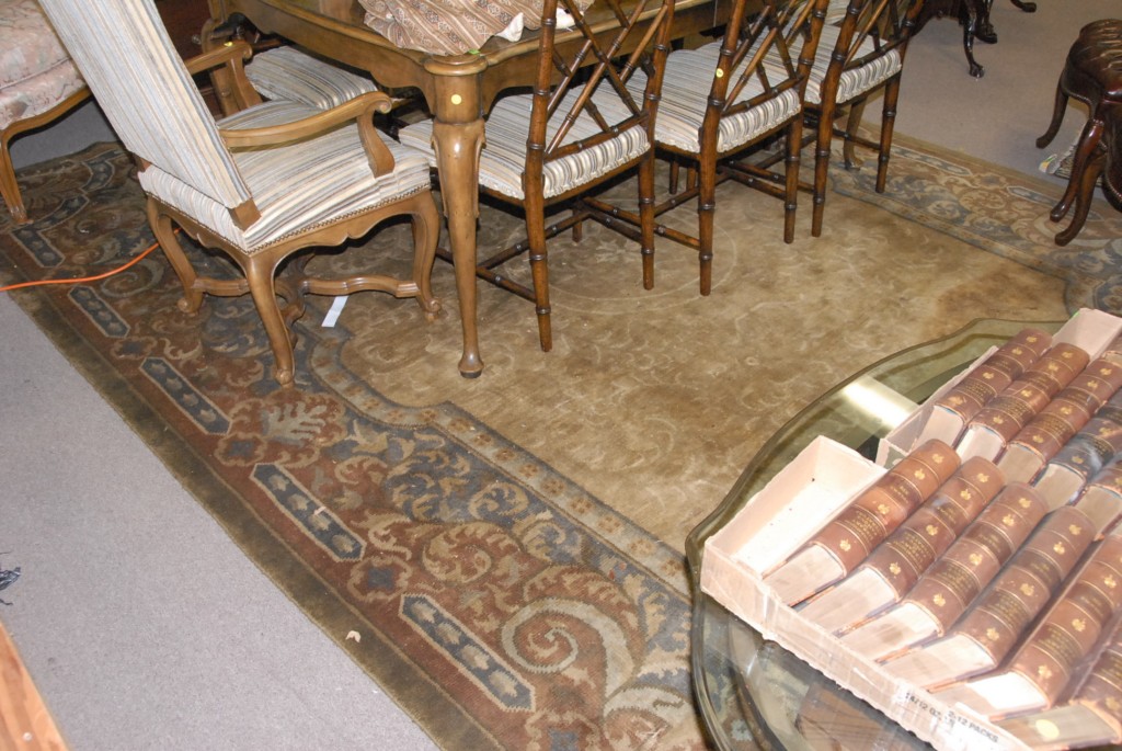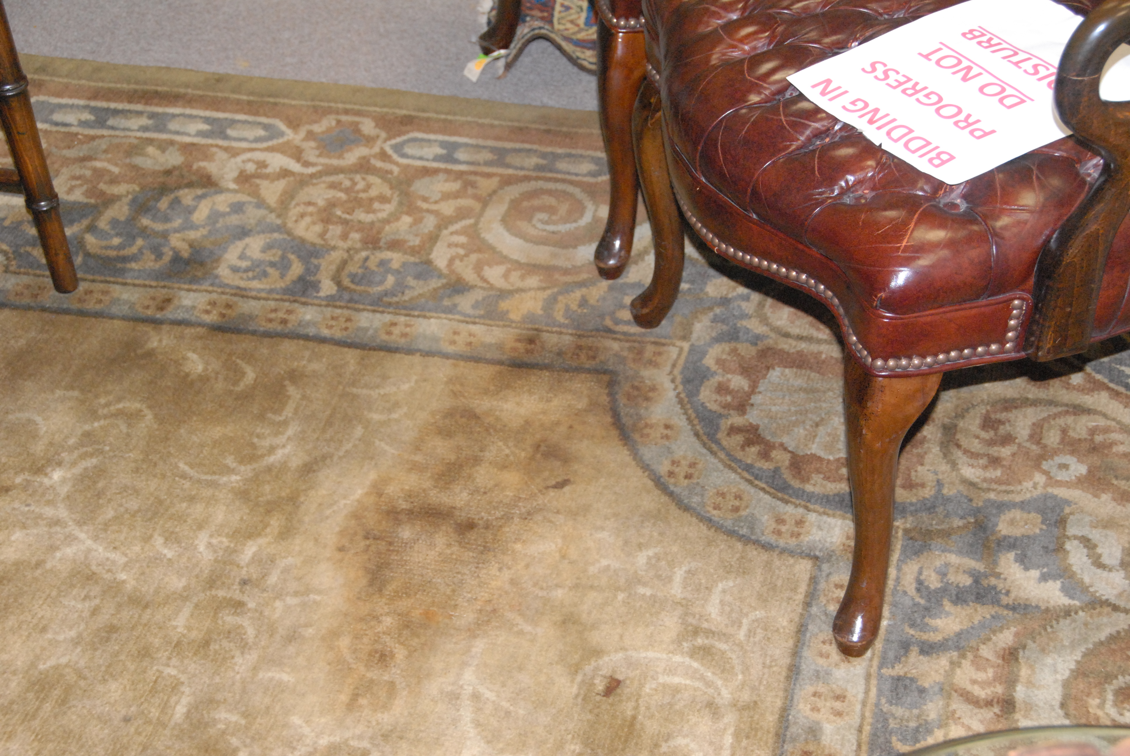 Lot 192: Oriental style rug 9′ x 11’8 stained.