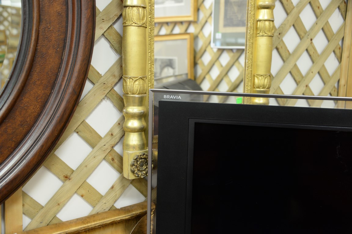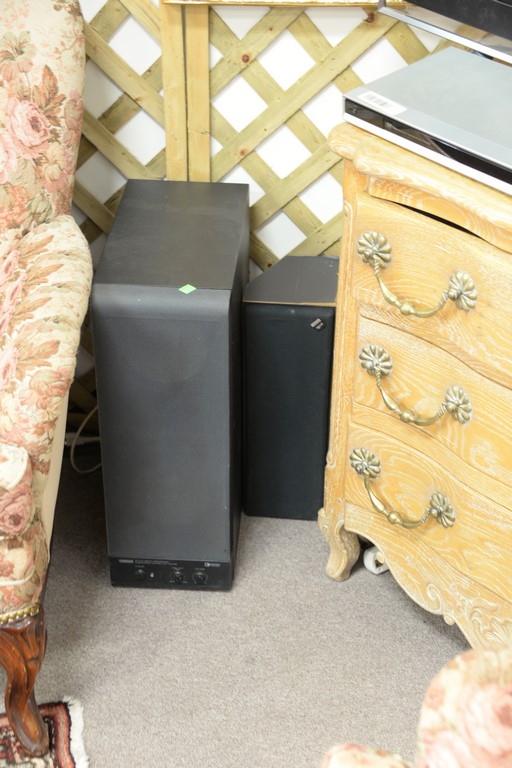 Sony Bravia 40 inch TV along with Yamaha subwoofer YST-S W100 and Polk speaker.