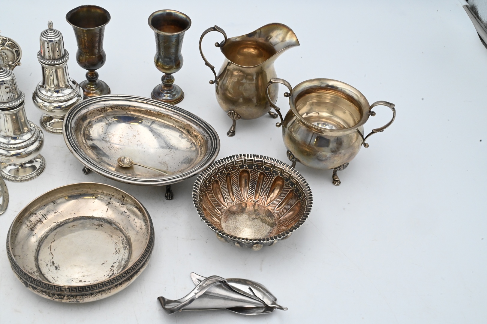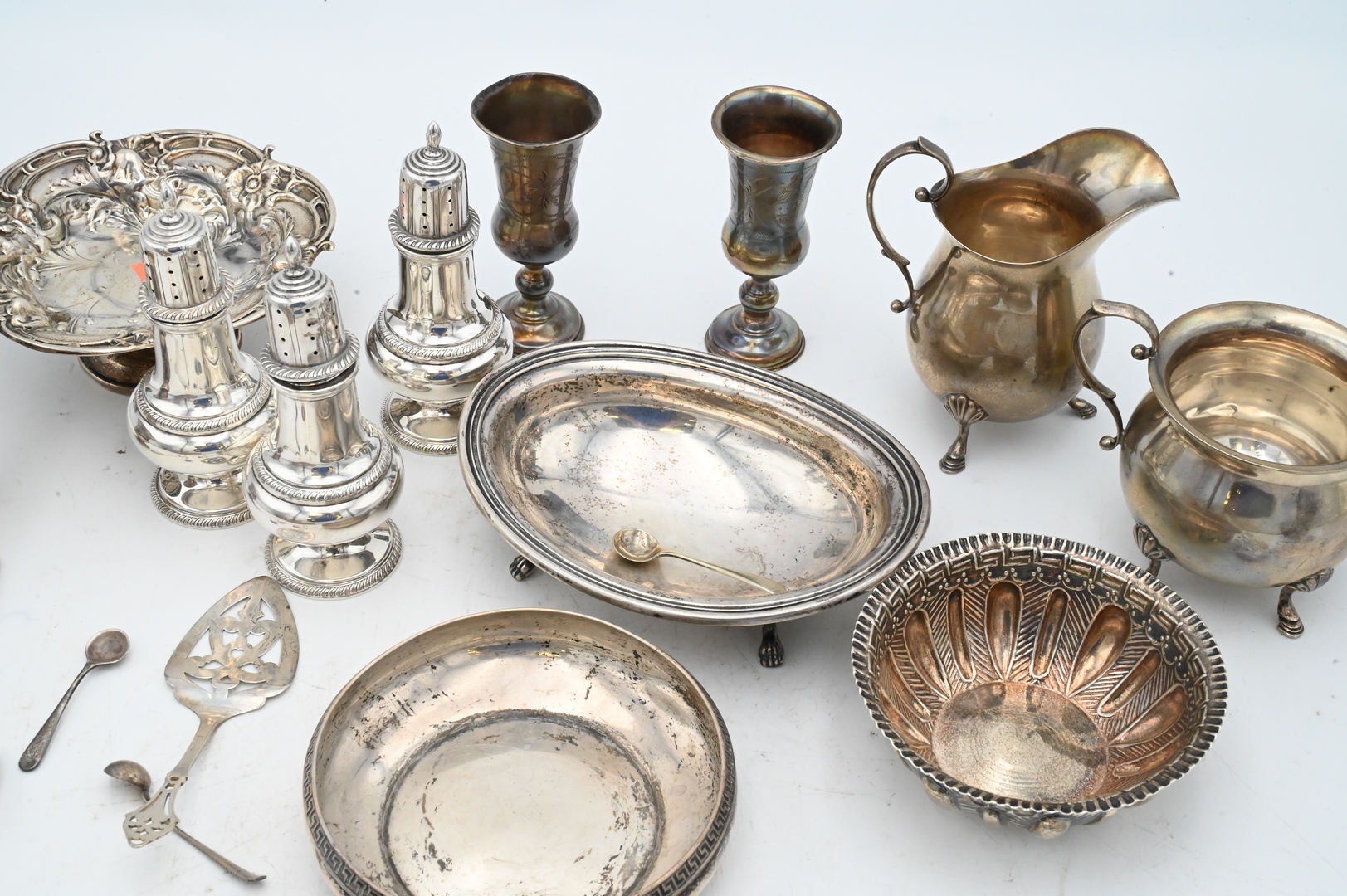 Tray Lot of Silver, to include sugar, creamer, bowls, salt and pepper shakers, etc., 42.5 t.oz.