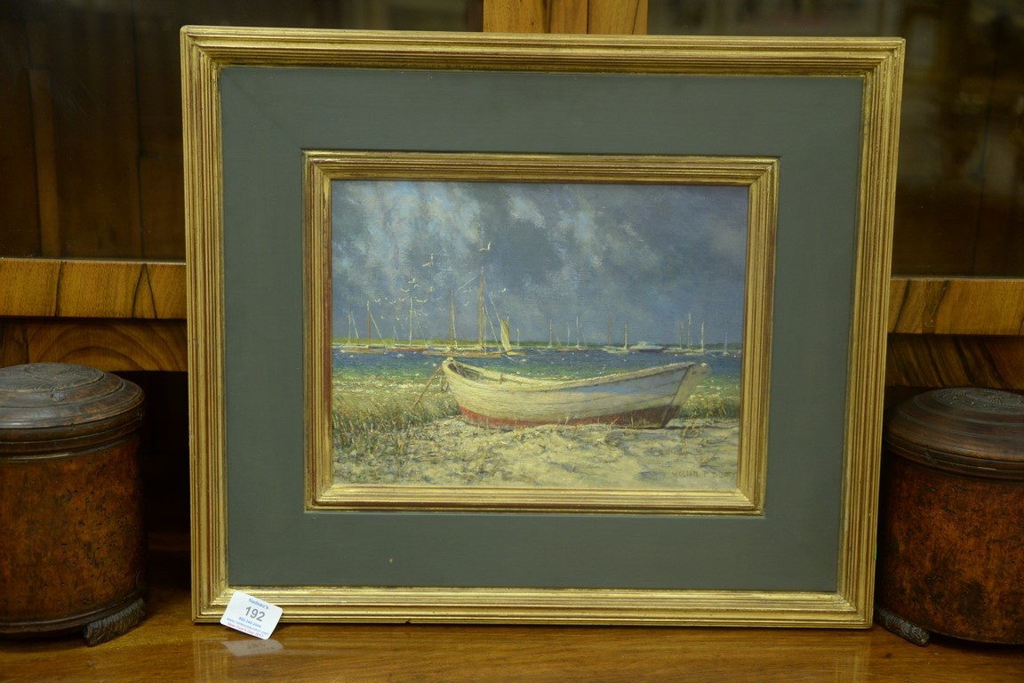 Lot 192: William P. Duffy 1948 oil on board Nantucket Textures signed lower right: William P. Duffy Mystic Seaport Gallery label on r…