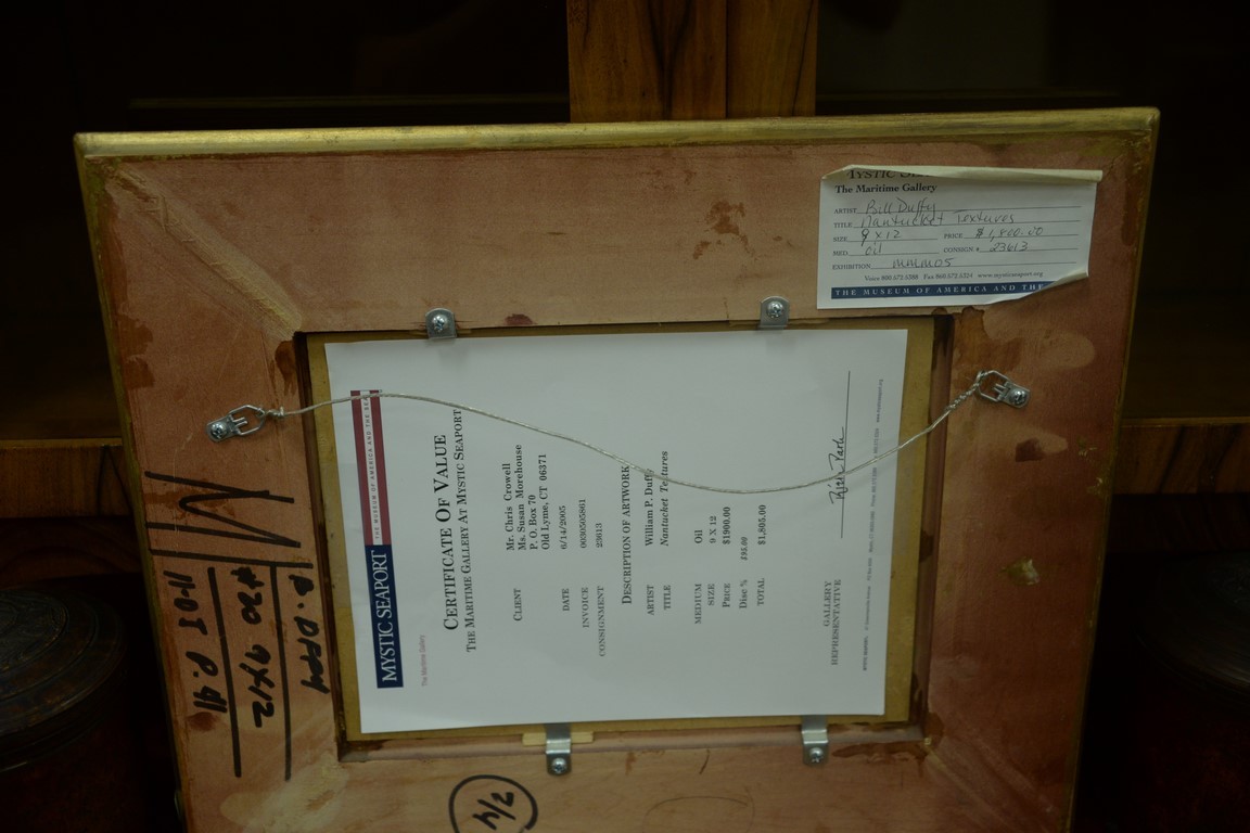 Mystic Seaport Gallery label on reverse along with a receipt for 1,805. dated 2005