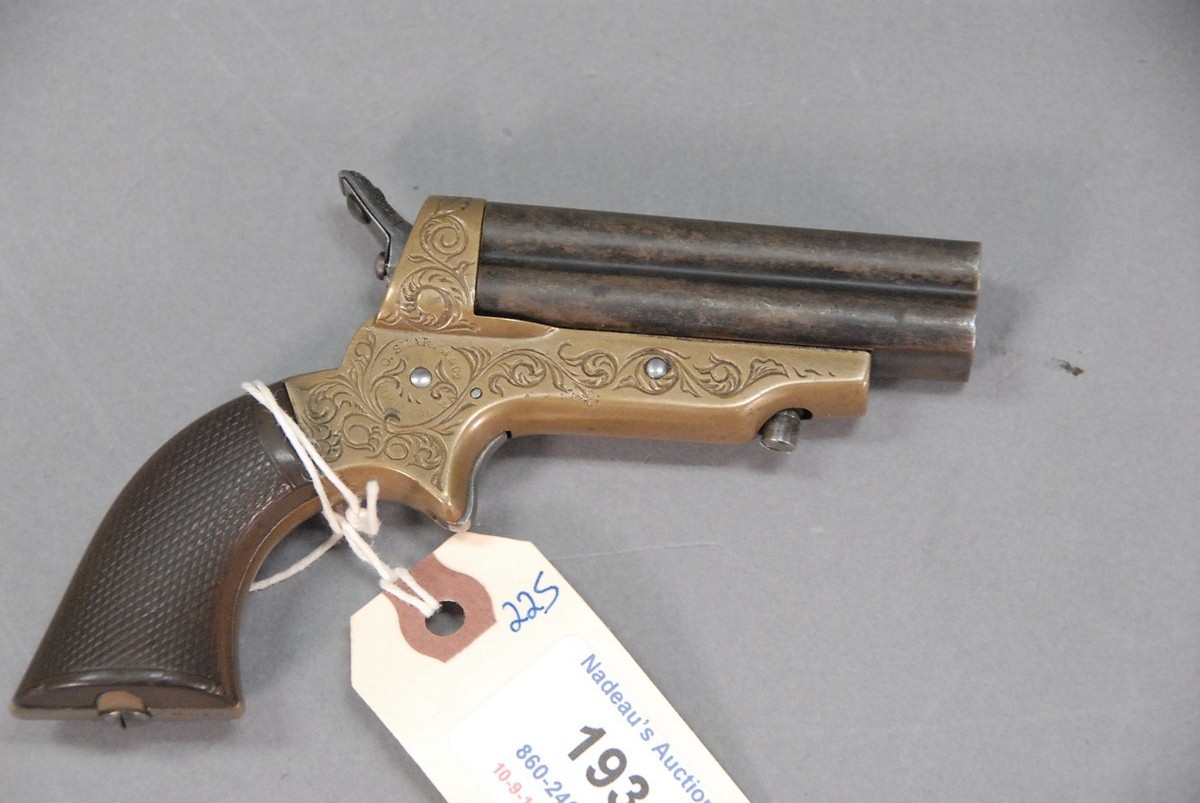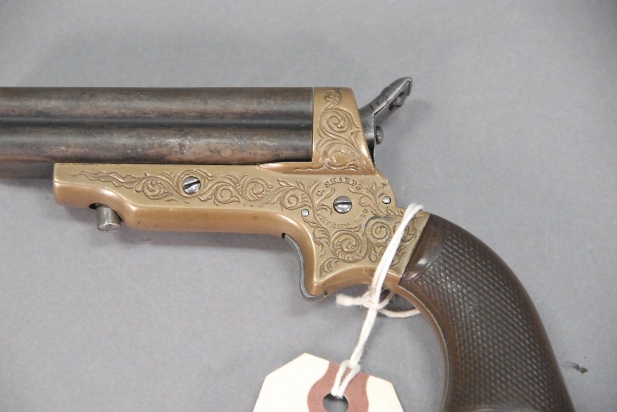 C. Sharps model 2A pistol, .30 caliber rimfire, 3 barrel, scroll engraving. 225 SN-6199