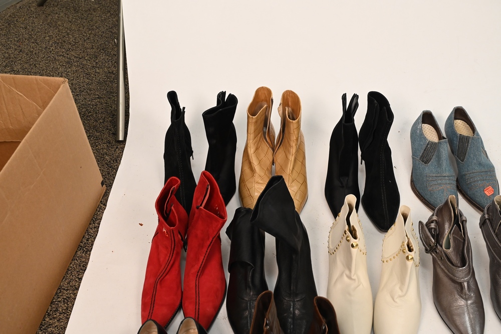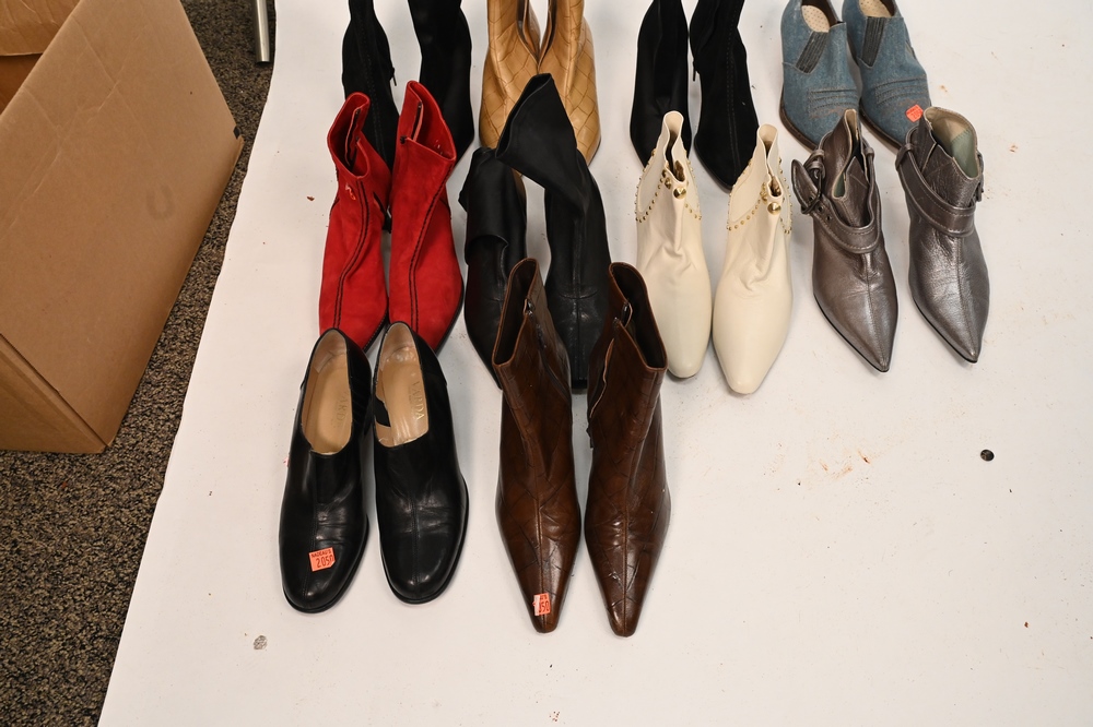 Lot 193: Designer Shoes and Boots, to include Varda, Manolo Blahnik, Gato Morrison, Bally along with others, sizes 8 – 9, pre-owned condition.