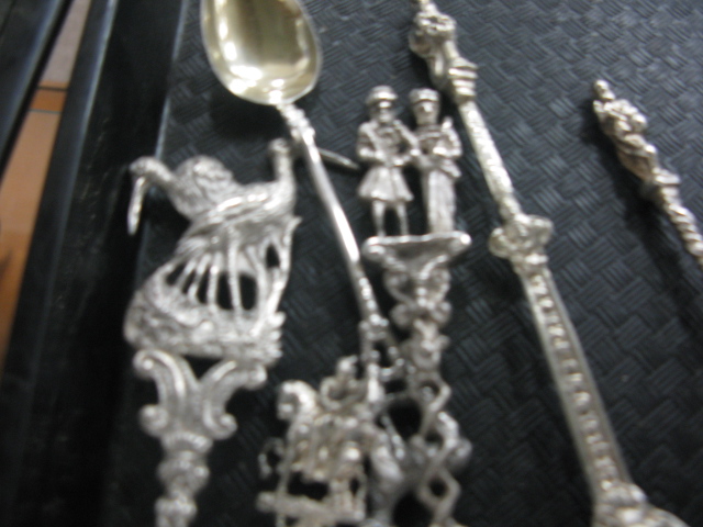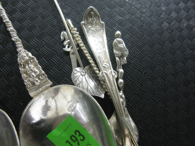 Lot of silver including Continental and sterling silver, several spoons mounted with figures