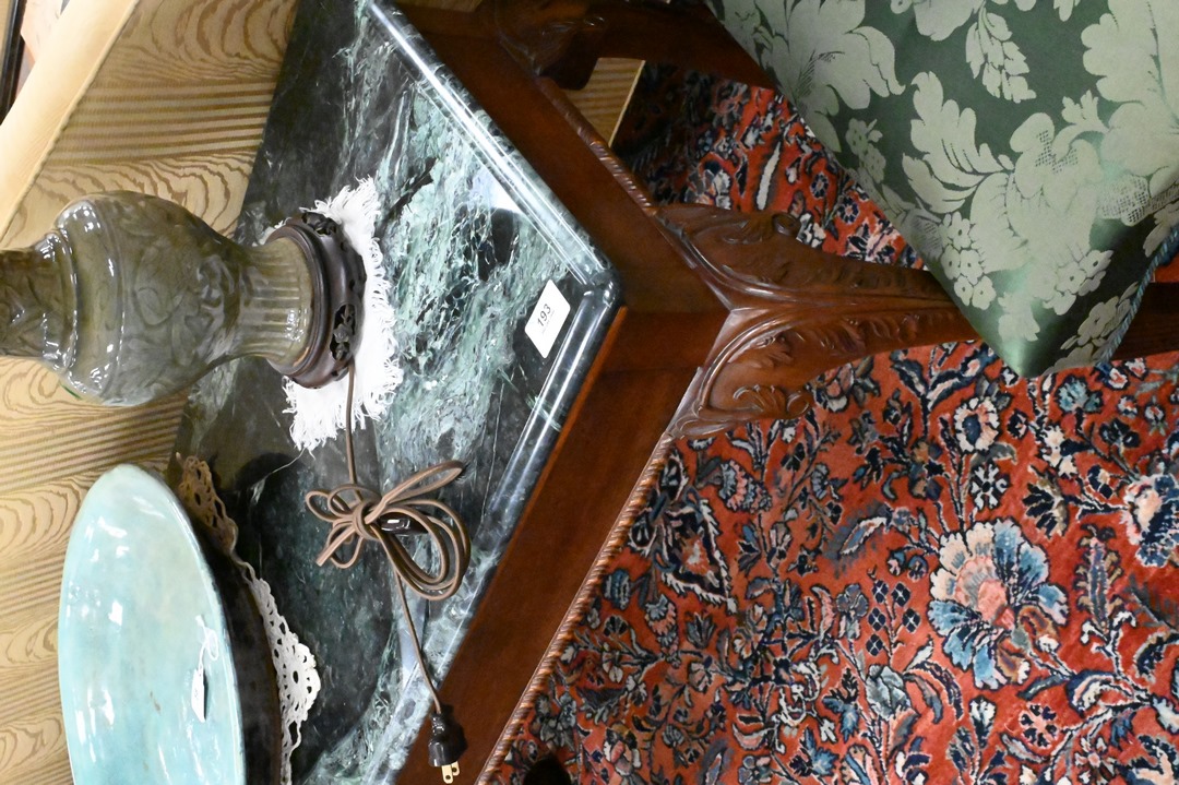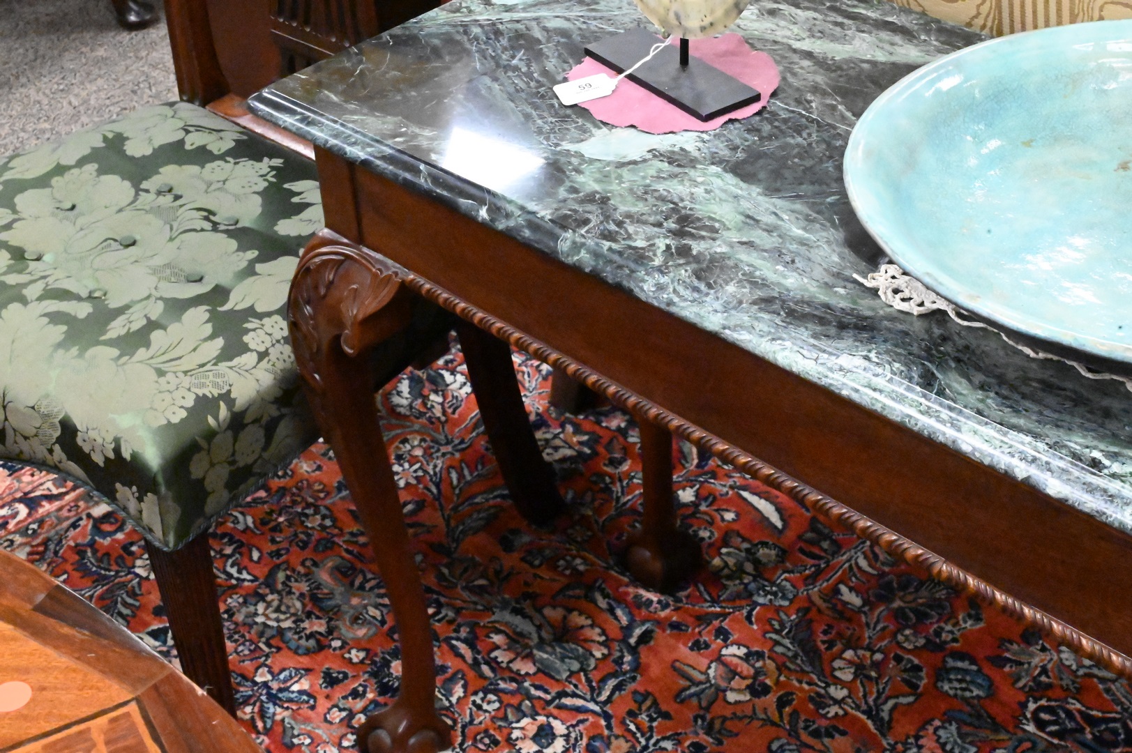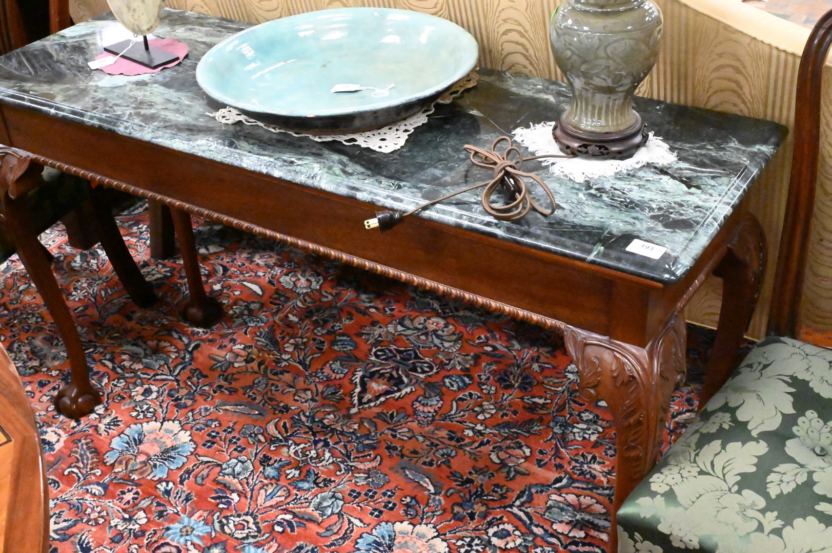 Mahogany Chippendale Style Marble Top Pier or Center Table, height 29 inches, top 17″ x 48″.