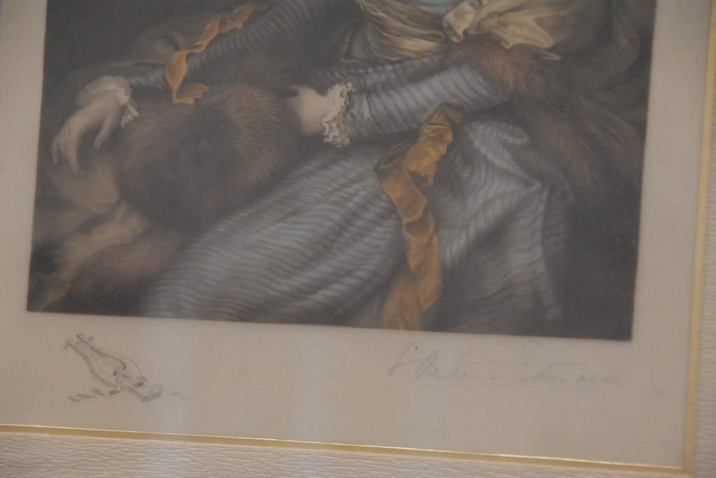Mezzotint of woman pencil signed S. Arlent Edwards, sight size 12 x 10.