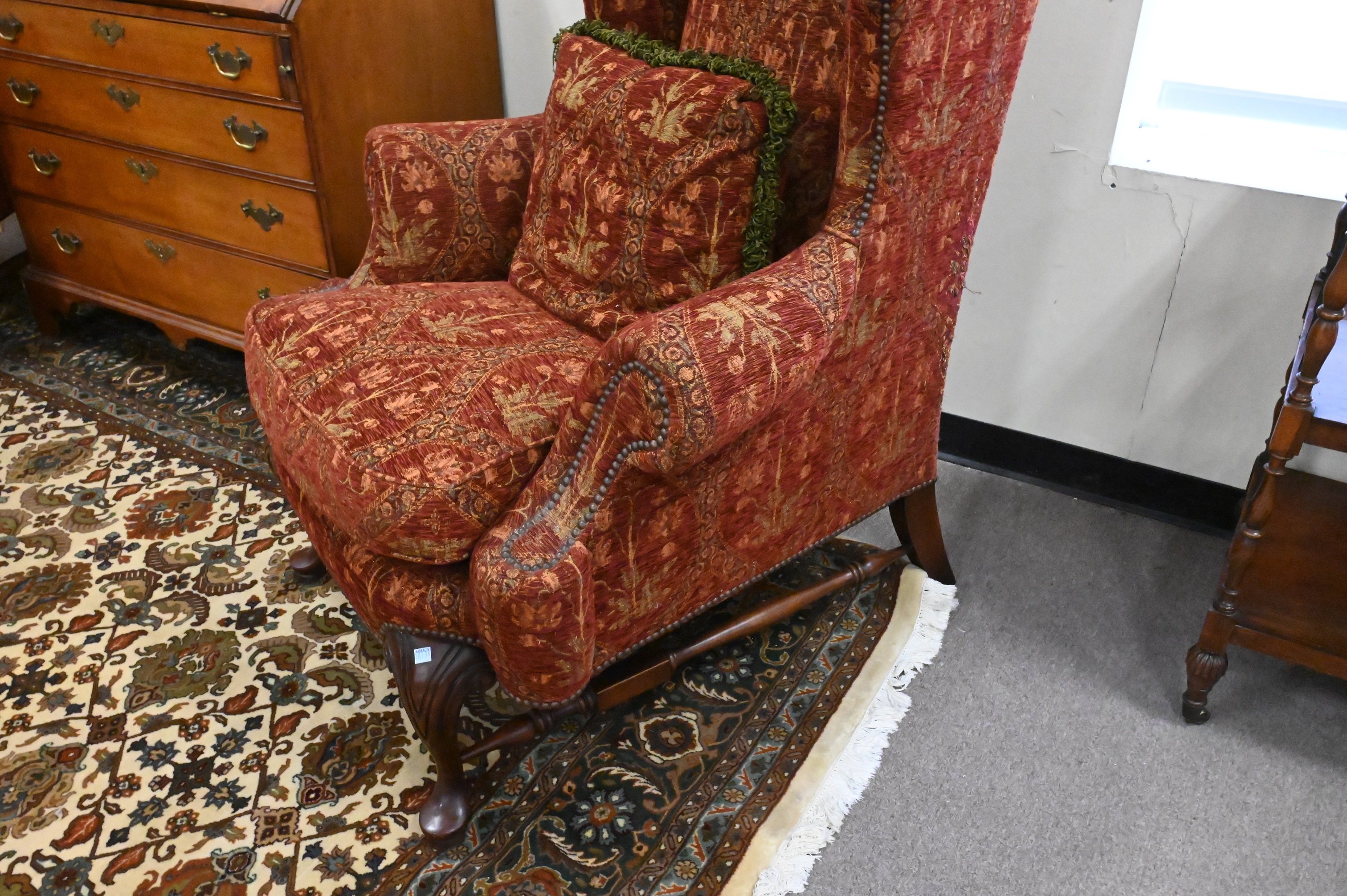 Lot 193: Pair of Lillian August Collection Continental Style Upholstered Wing Chairs