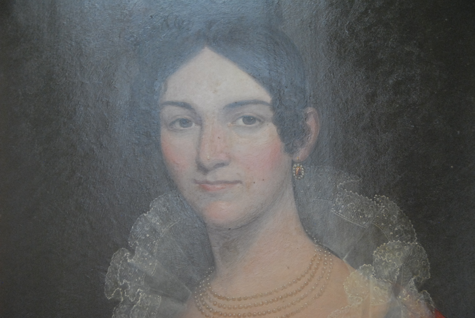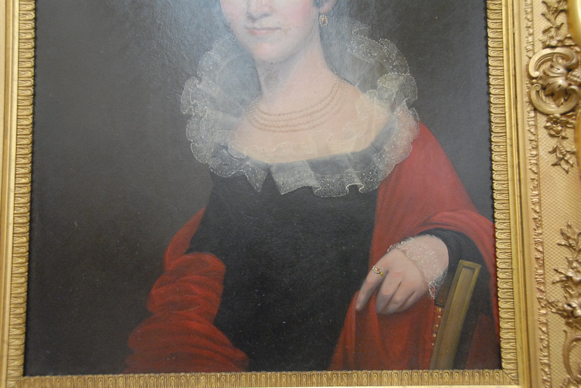 Primitive oil on panel portrait of a woman in a chair. 28 x 23
