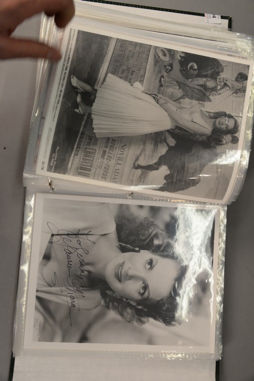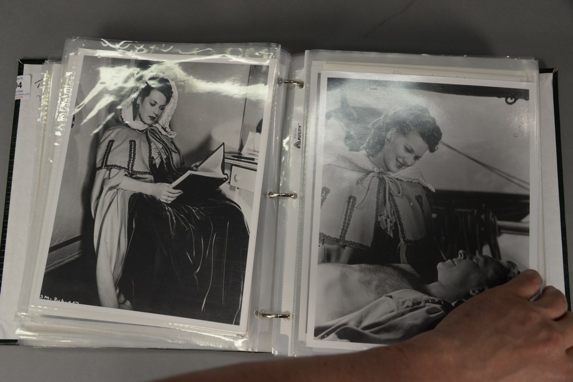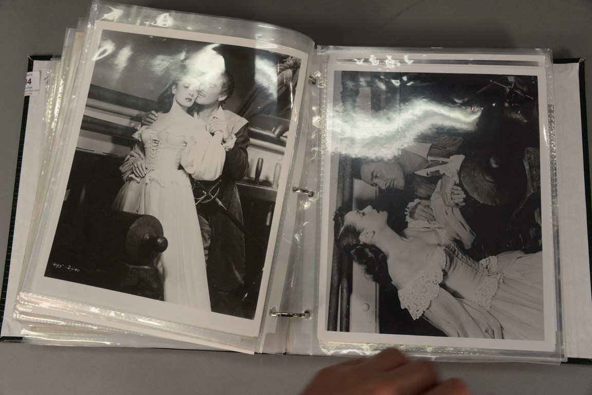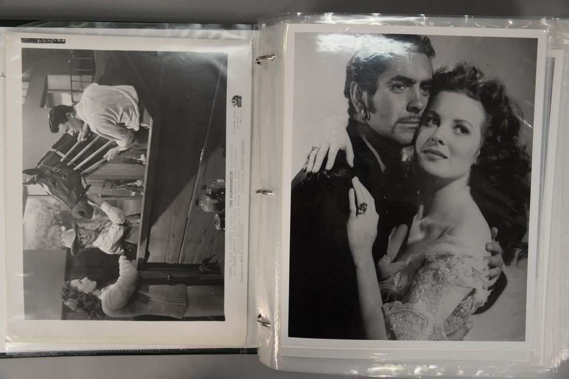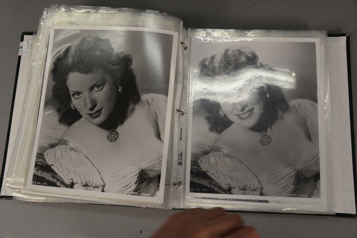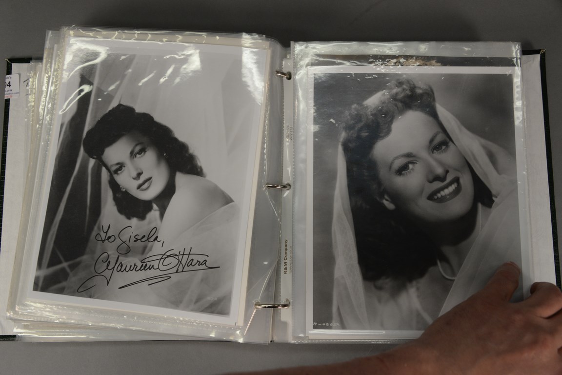 Lot 194: Binder of approximately 180 photographs from the films of Maureen O’Hara, approximately 34 of them are signed.