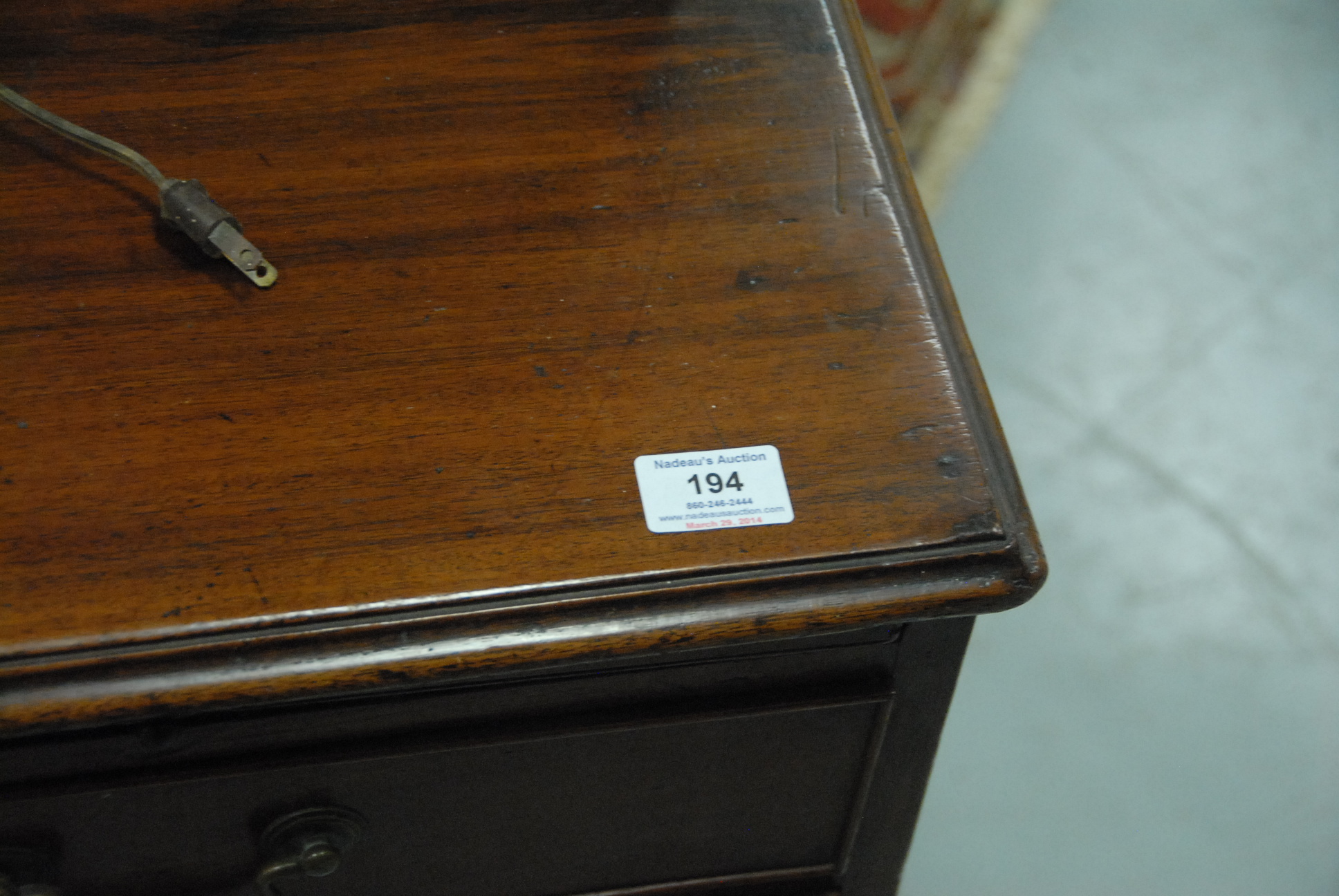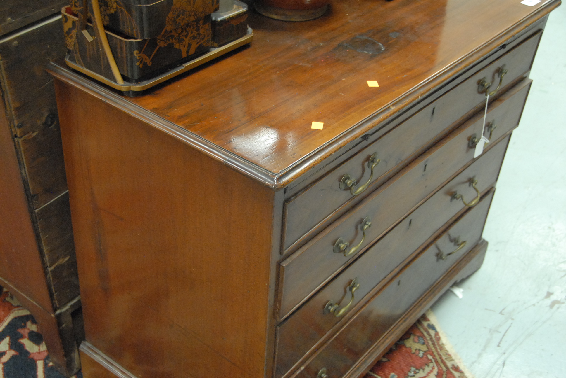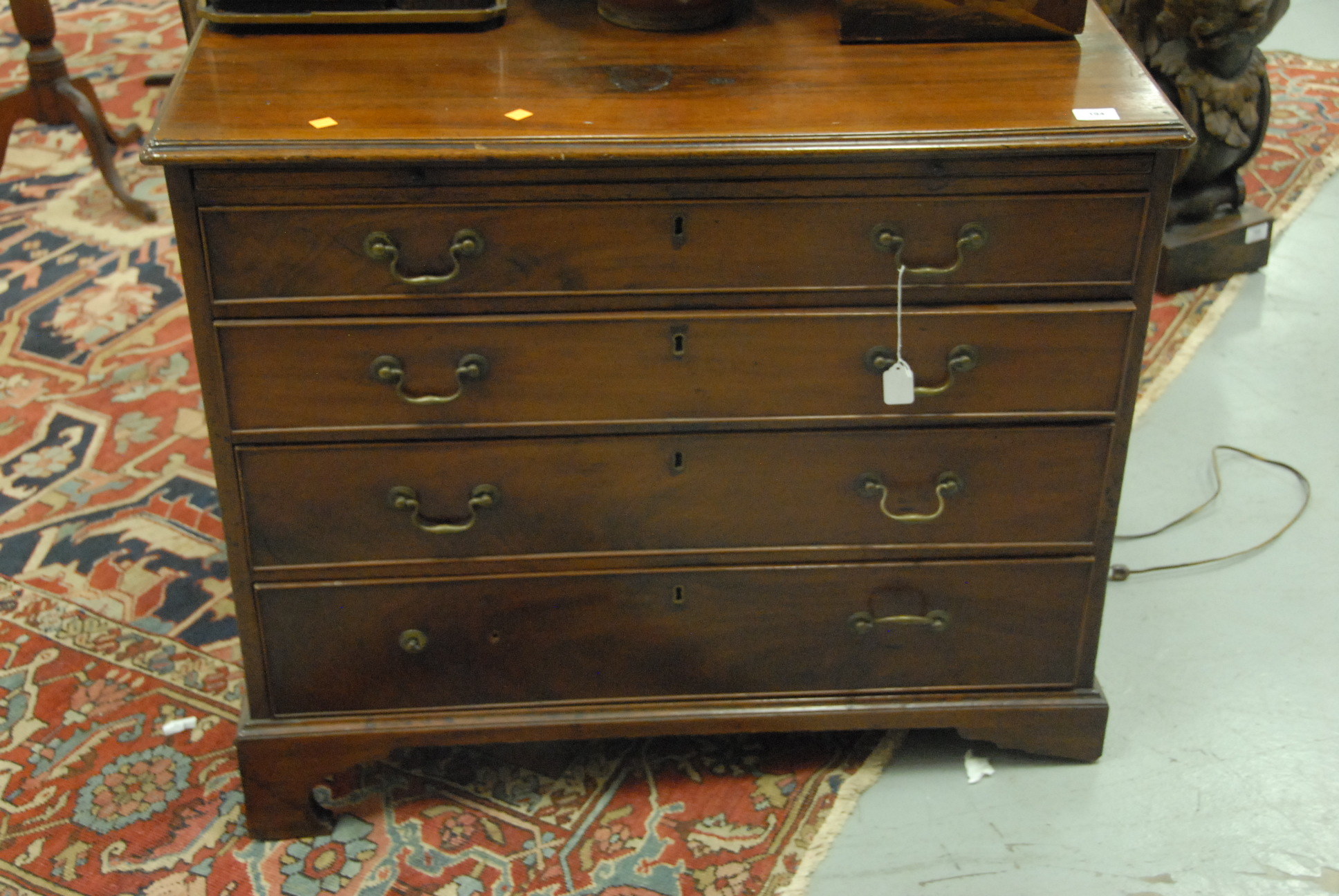 Lot 194: Chippendale mahogany four drawer chest on cut out bracket base, original hardware, late 18th century. ht. 32in. wd. 36in. dp. 19in.