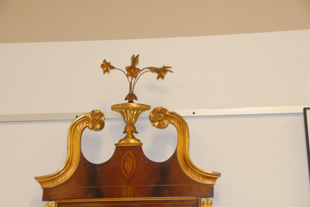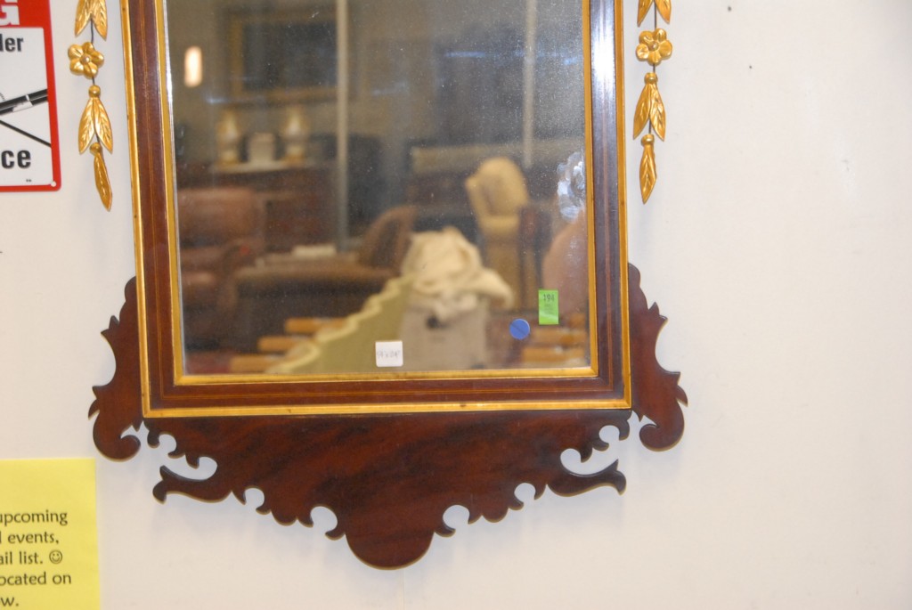 Custom mahogany Federal style mirror with gilt urned top, ht. 54in. wd. 24in.