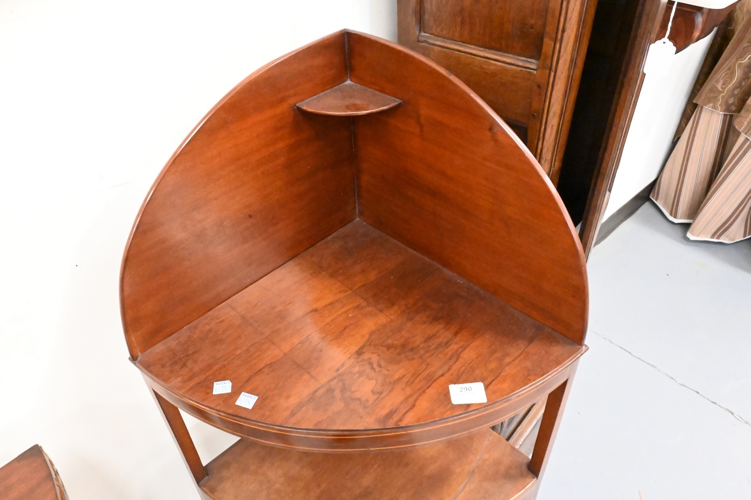 having two tiers with bottom tier having center drawer flanked by two small drawers