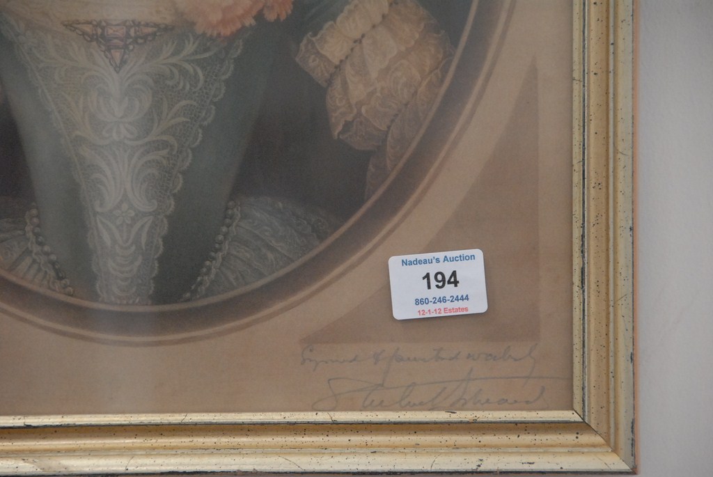 Mezzotint of woman pencil signed S. Arlent Edwards, sight size 14 x 11.