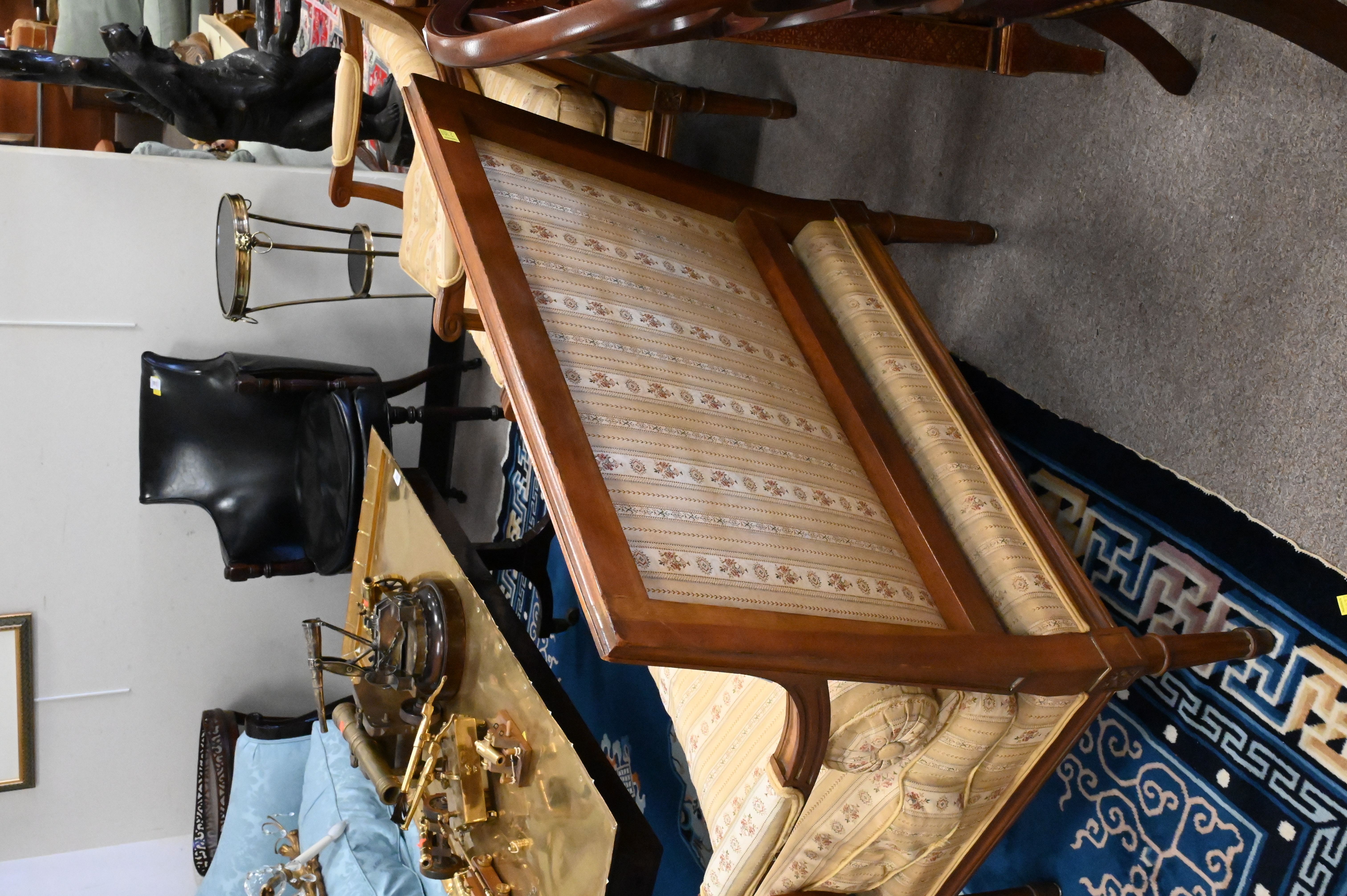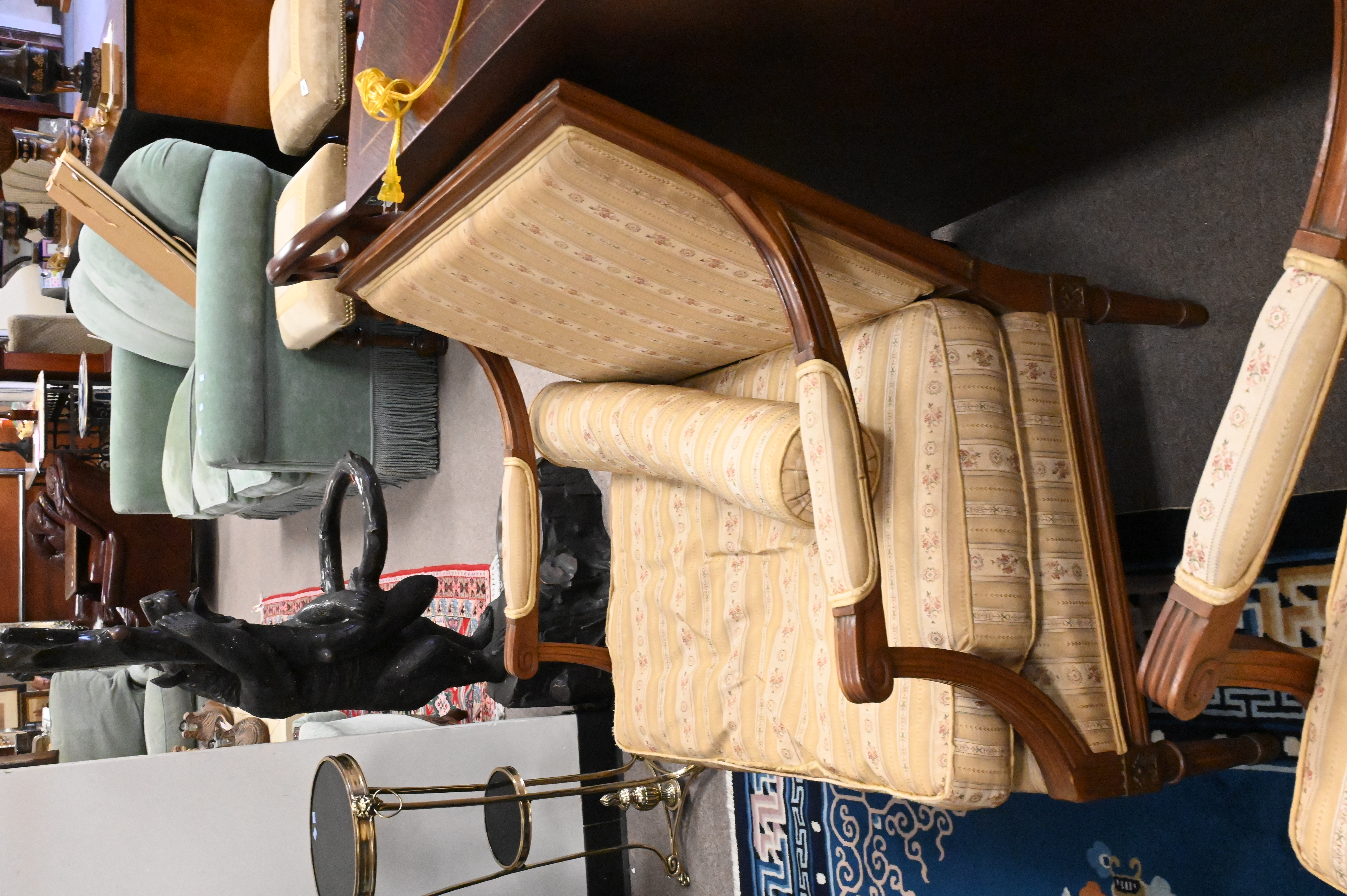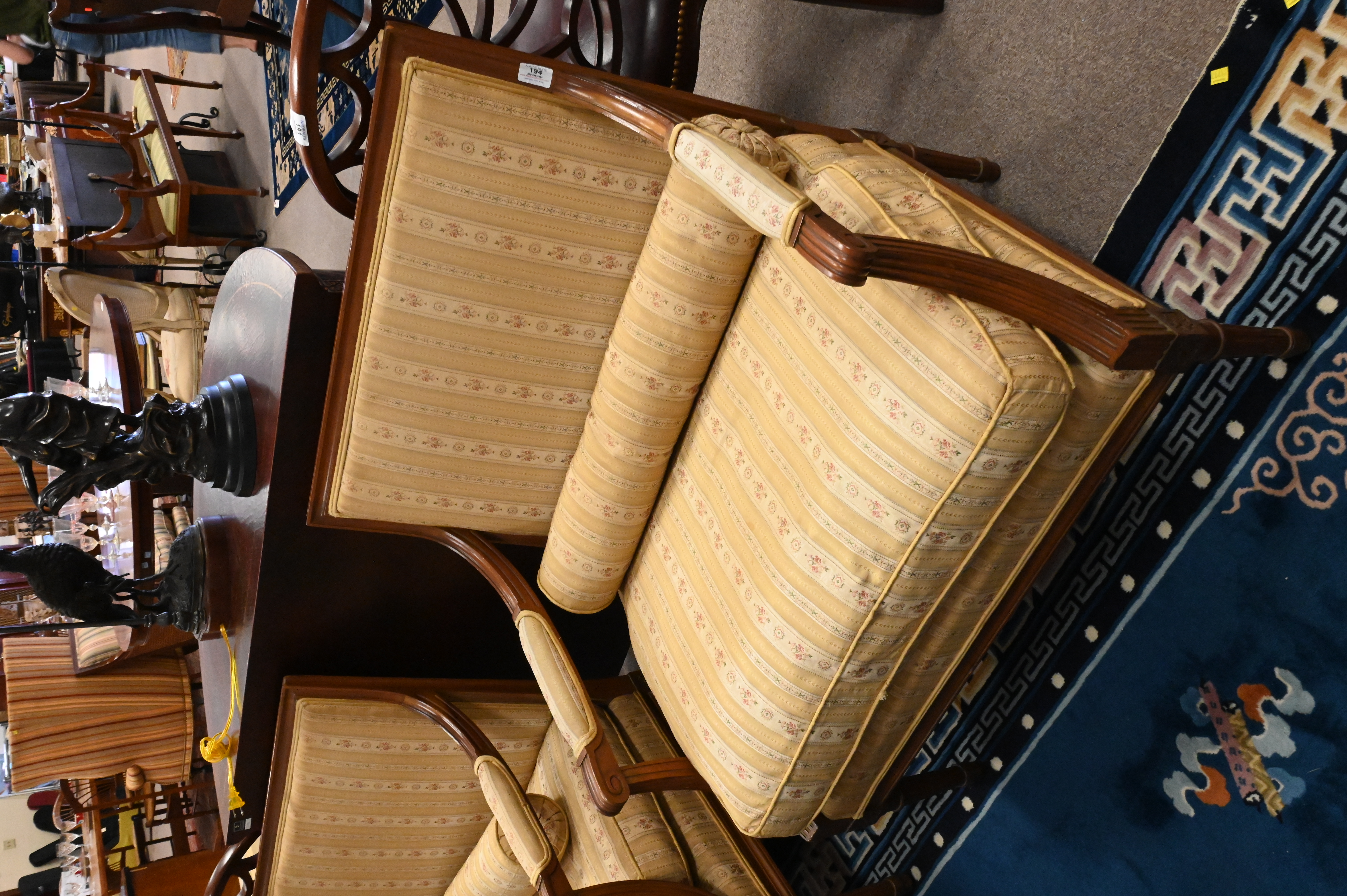 Pair of Louis XVI Style Open Arm Chairs, height 34 inches, width 33 inches.