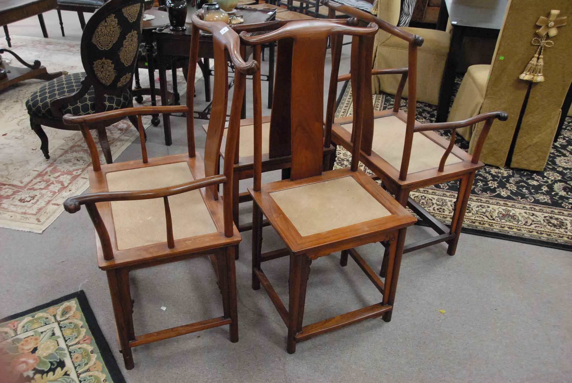 Set of four Chinese Officials Hat Chairs, two arm and two side.