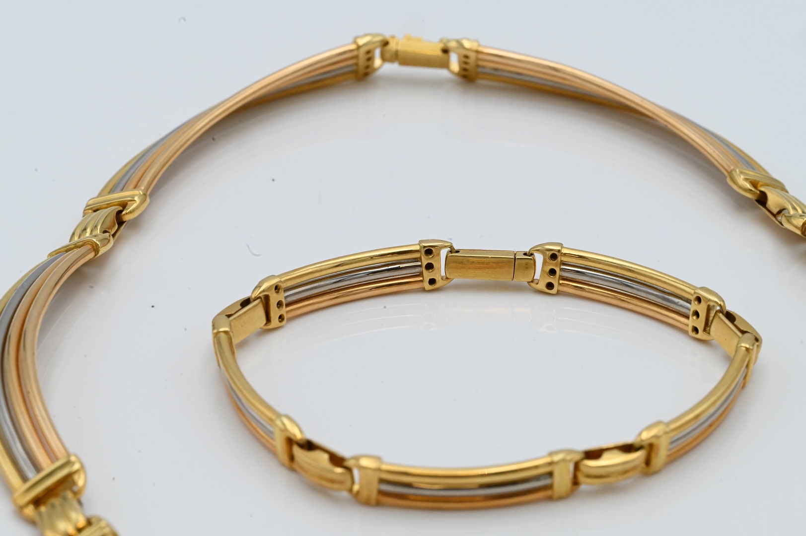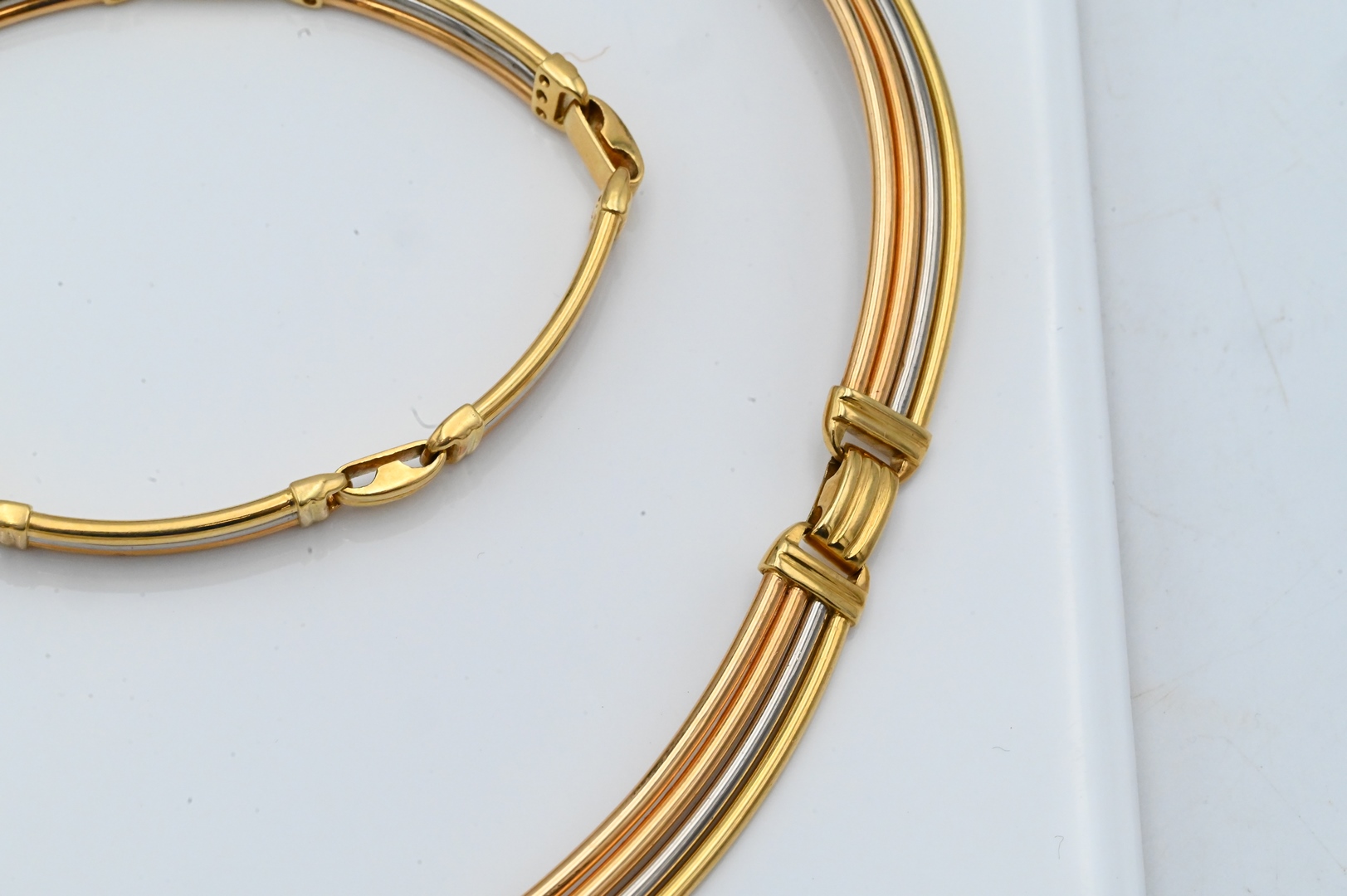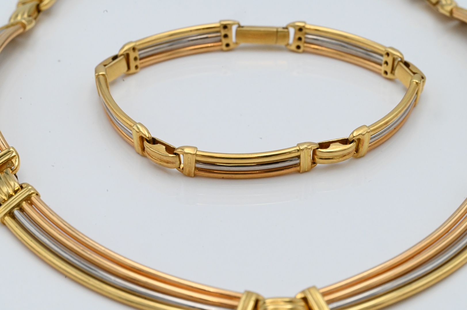 Tricolor 18 Karat Gold Necklace and Bracelet