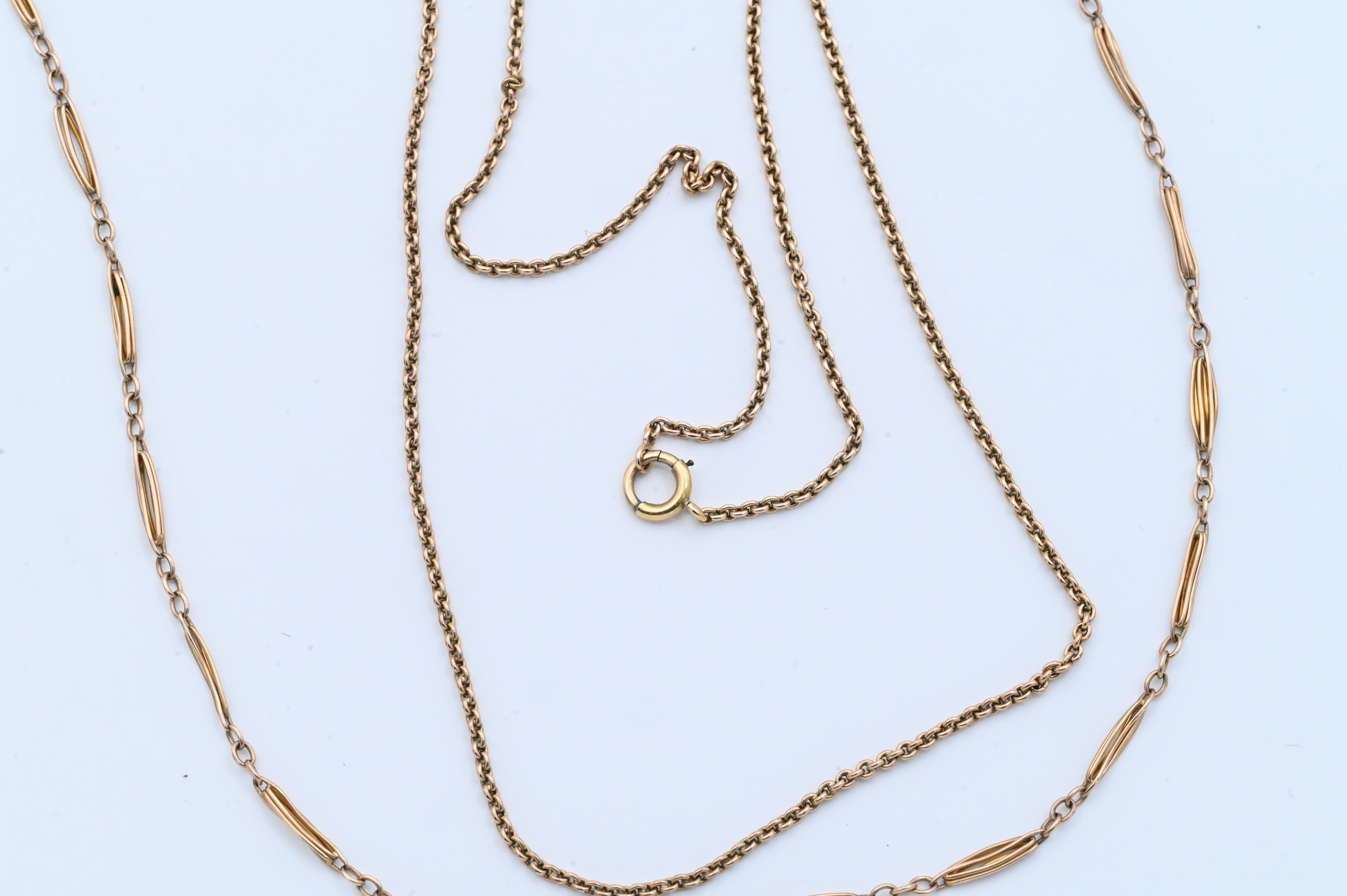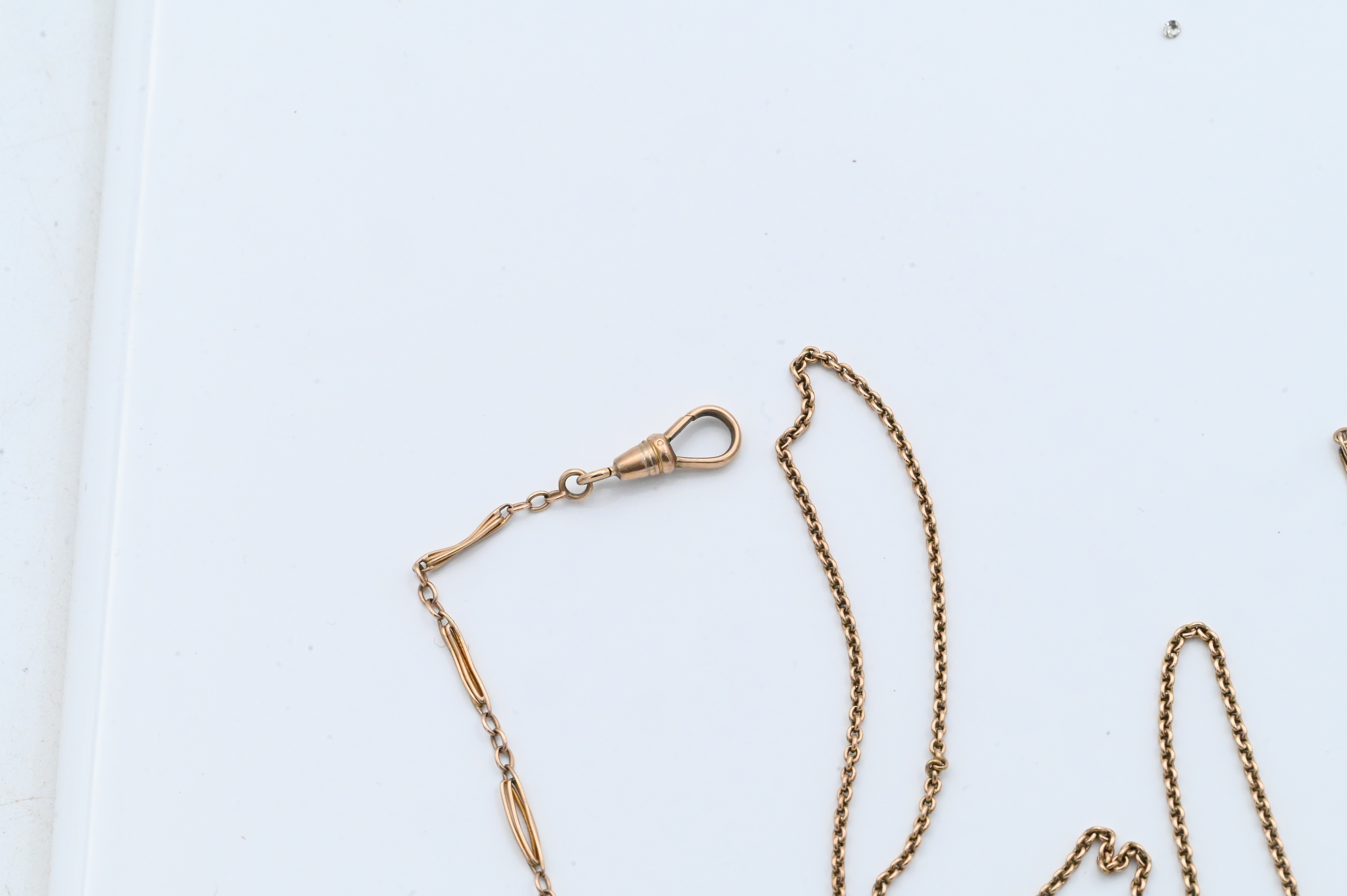 watch chain 13 1/4 inches long, necklace 18 inches long, total weight 9.1 grams